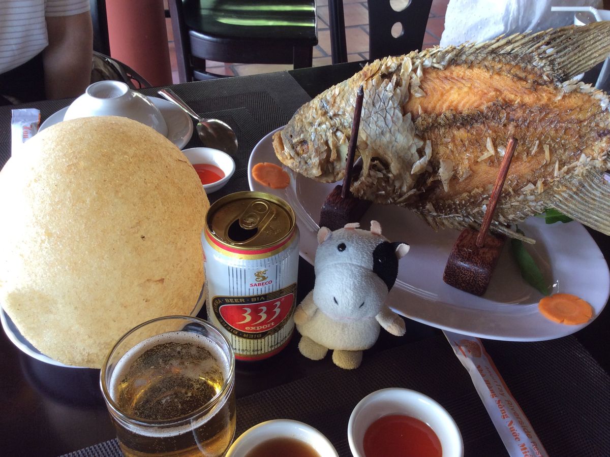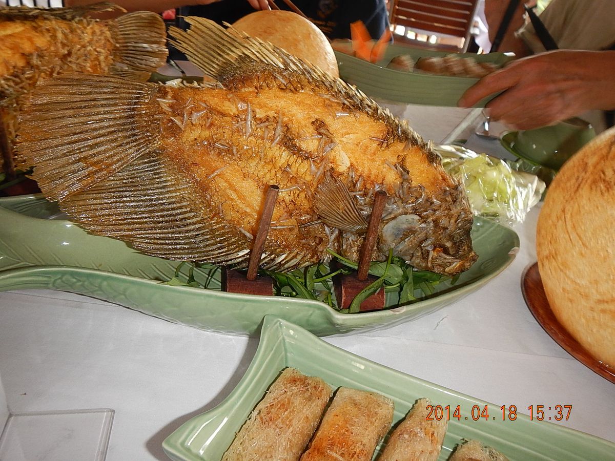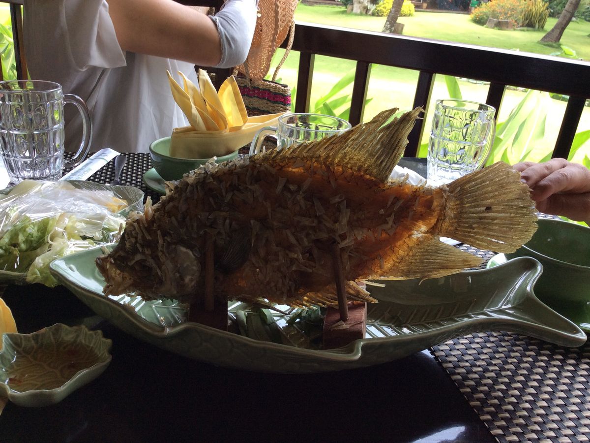 帰路に昼食ですが、この手のツアーに付いている食事には全く期待していませんでしたが・・・レストランの雰囲気も、エレファントフィッシュの素揚げも、とてもいい内容でした。