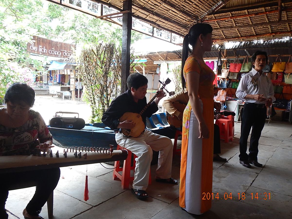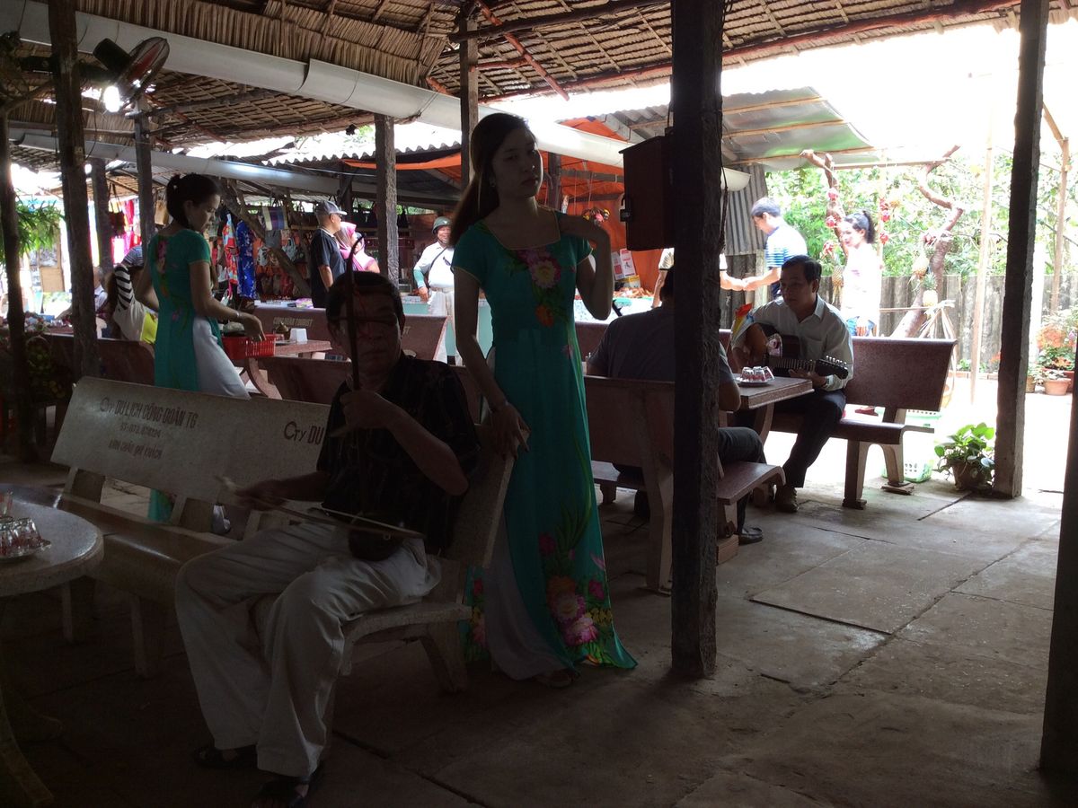 メコンデルタで、フルーツを食べながら現地の歌が聴けますが、