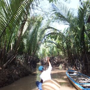 船に乗ってゆったりと流れるメコン川クルーズやココナッツキャンディ工場見学を