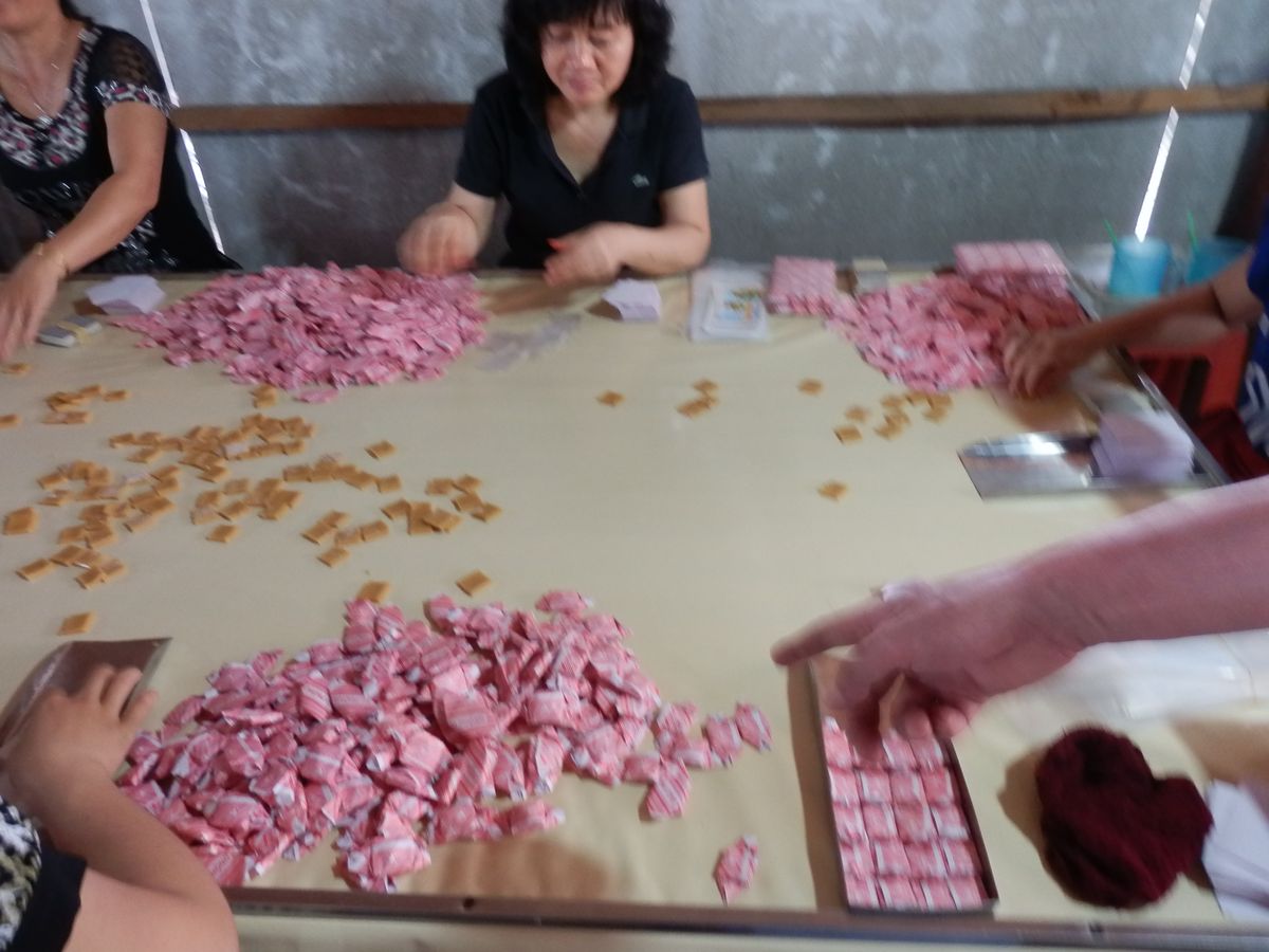 工場というより広めの民家の庭でココナッツキャンデーが作られており、ココナッツミルクを絞る工程から煮詰めて成型するところまでが見られます。
