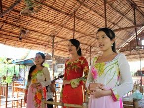 パンフレットでは、メコン川のマングース生い茂るジャングルへ行けるような感じだったが、狭い水路の両脇には民家があり、モータバイクが走っている道があるような所でしたので、少々がっかり。若い女性向きかなという感想です。