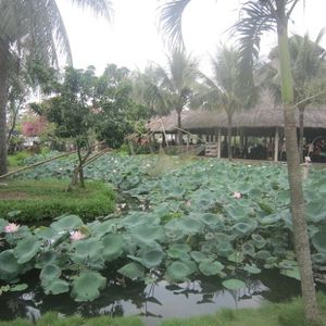 昼食のレストランは、ハスの花がきれいなレストランで、食事もおいしかったです。