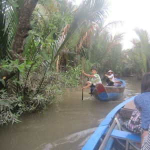 ツアーはホーチミンの街から二時間ほどドライブ、10分程ボートで村まで移動。村では主に樹とか果実の説明、二時間ほどまったりと歩き、手漕ぎボートで10分程かけてボートの泊まっている所まで移動し、ボートで戻って、別の場所でごはんでした。虫除けスプレーを忘れましたが、全く問題ありませんでした。ジャングルに見えてただの樹で囲まれた道で、ビーチサンダルで余裕の見学。