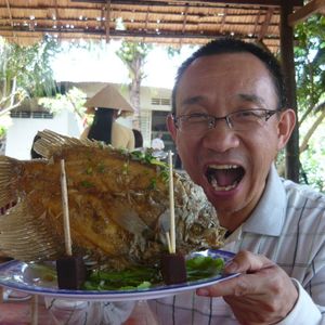 ガイドの方は日本語が上手で、バスの中では昔はココナツ教があったことやベトナムの人はねずみも食べるけれど、ホーチミンのねずみは汚いので食べない話などおもしろかったです。昼食の魚は、見た目とは違い食べるとおいしかったです。飲み物代は別料金でした。違うツアーでも、この方のガイドなら参加したいです。