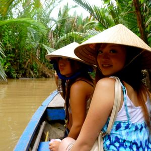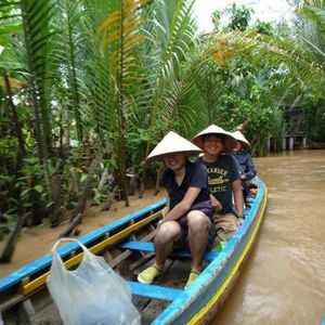 そして、メコン河ですが、手漕ぎボートでベトナムの雰囲気がある帽子(?)を頭に乗せ、乗るととても楽しかったです。