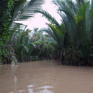 メコン川 思ってた通り 泥の色でしたが 手漕ぎボートでジャングルのような大自然の中を満喫♪ ヤシノキが結構生えてるんですね☆でも決して リゾート感覚ではないです