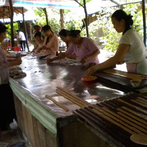 日の暮れたメコン河に浮かぶ船から、岸辺の木に止まった沢山の蛍を見ました。ちかちかとまたたき、本当にクリスマスツリーのようでした。幻想的で、ロマンチックで、またぜひ行きたいと思う不思議な光景を見せてもらいました。夕食の内容は「残念」。蛍を見るんだと割り切って、食事はあまり期待しない方がいいかもです。