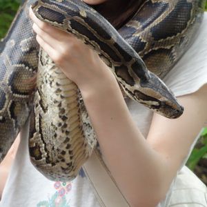 内容的にはすべて貴重な体験で楽しかったですが、意外に楽しめたのがニシキヘビを首に巻いたことです。