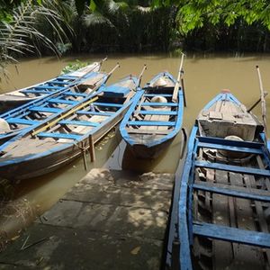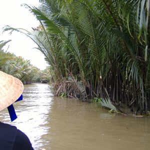 閑静なメコンデルタでの手漕ぎボートは、