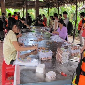 こちらのツアーは、メコン川の川下り、蜂蜜農園、ココナッツ工場の見学、伝統音楽の鑑賞など、