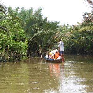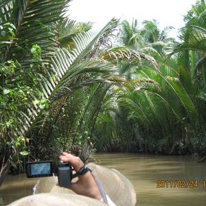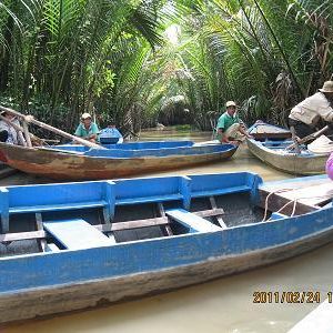 20人乗りの船から4人乗りの小舟に乗換え、要所要所で休憩もあります。しつこい土産売りにも出会わず、またココナッツキャンディ1袋(25000ドン、100円程度)やはちみつ500ml(100,000ドン、400円程度)も手ごろな金額だと思いました。できたてのココナッツキャンディや工場でとれたはちみつの試食もおいしかったです。