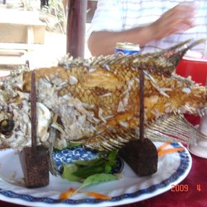 次にカメ島にエンジン付きの船で渡りエレファントフィッシュを食べました。なかなかの衝撃的な顔です。船を降りた所にあるトイレが一番きれいな感じでしたがその他のトイレは使うのに勇気がいります。ウエットティッシュは必需品です。トイレ休憩が何回もあってどこのトイレが一番きれいか、何回トイレ休憩があるか教えてくれたら助かったと思います。