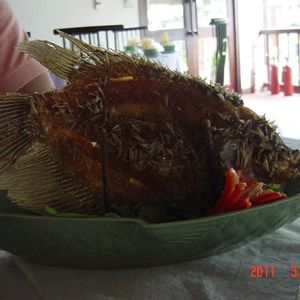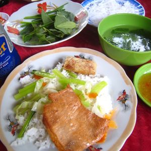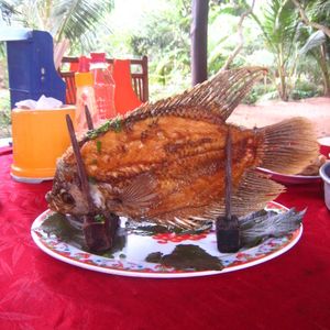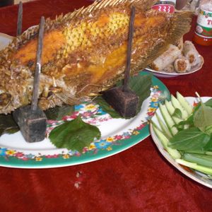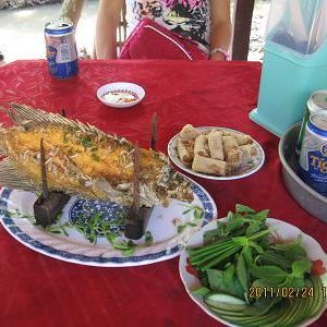 食事は、巨大な魚のフライがおいしかったです。しかし一緒に出されたライスは味がせず、おいしくなかったです。フライドライスにする等、調理されているともっとよかったです。春巻もイマイチでした。気になったのは、テーブルの都合上からか、その場で初めて知り合った方々と1匹の魚を分けて食べるので、少々気を使いました。ツアー金額が格安だと思いますから、ツアー金額をあと数百円アップしてもかまいませんので、食事をビュッフェ形式にしたり、食事のクオリティをあげてほしいと思います。「ベトナム料理はおいしい」という評判があって、期待も大きいとため、料理がまずいとがっかりすると思います。ツアーの全体的な構成やガイドの方がよかっただけに、料理の点だけは残念でした。