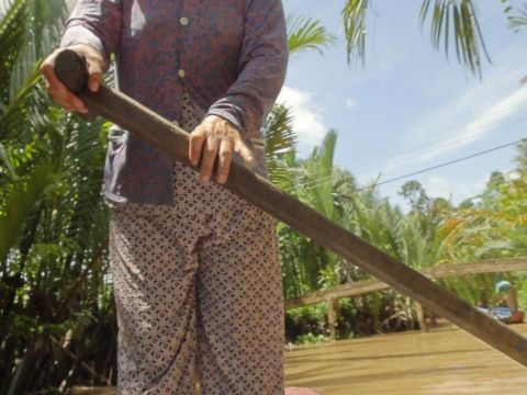 日本の夏休み中ということもあってか、往復のバスは満員(30名弱?)でした。3名で参加したところ、手漕ぎボートや休憩時のテーブル席など、すべて相席になりました。でも、写真を撮ってもらったり、情報交換などすることもでき、楽しいツアーでした。ベトナム人のガイドさんだったので、現地の様子や習慣を色々紹介してくれたし、とてもまじめで気配りが効き、日本語も上手な方でした。大変感謝しています。目的地到着までの1時間強の間に、ホーチミンでは見られない風景をたくさん目にすることができました。これもガイドさんの説明のおかげで、とても意義のあるものになりました。