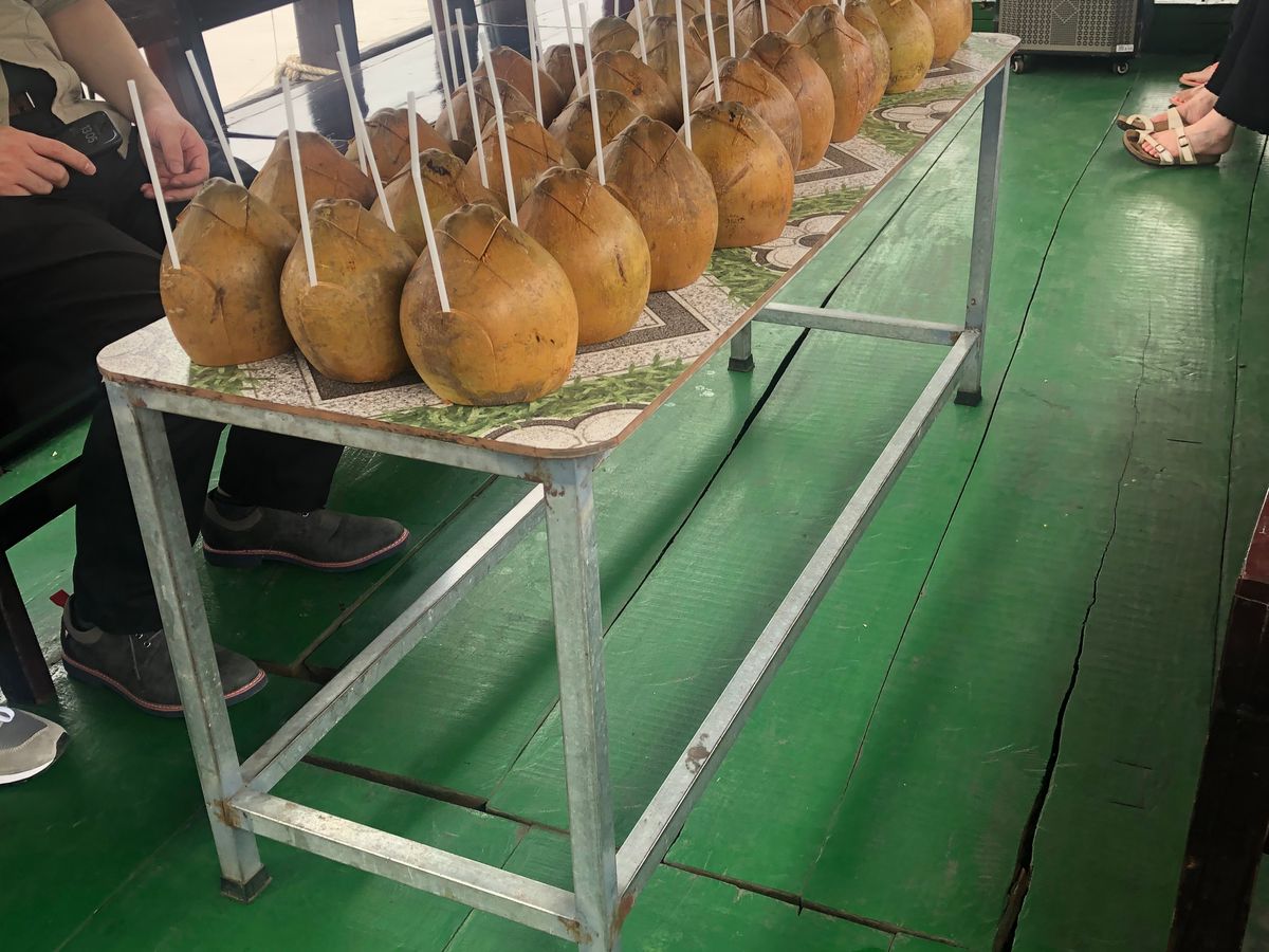 再び船に戻ると、その場で割った新鮮なココナッツジュースのサービスがありました。
