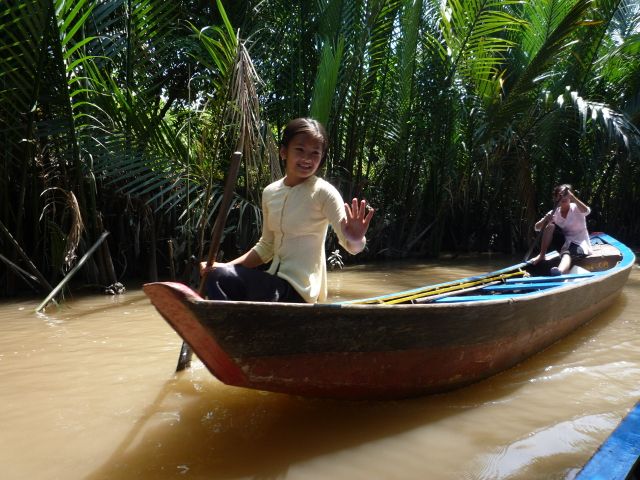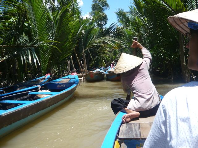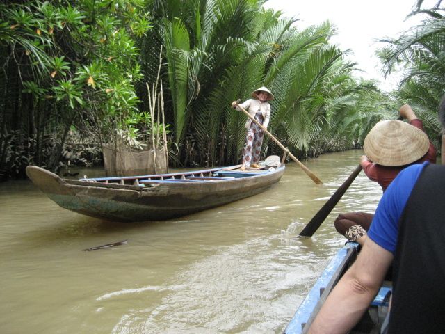 閑静なメコンデルタでの手漕ぎボートは、