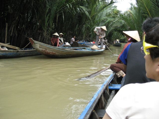 手こぎボートに乗ってのジャングルクルーズでは、ベトナムの人がよく被っているあの三角帽を被らせてもらえましたが、その機能性に驚きました!通気性、日よけ、バッチリ!ベトナムの人の日常をちょっと体験できた気分。手こぎボートのおばちゃんは、すれ違うボートにチップらしきものを見かけると、しきりと指をさしてチップを要求しているようでしたが、降りる時はあっさり降ろしてくれたので、ひと安心。別に大した額ではないので渡してもよいのだけれど、代金はツアー代に含まれているはずで、現地の方とそういう格差を作りたくないし、こうした観光地でしつこいチップ要求をされるといつもげんなりしてしまうのです…でも渡したい人だけどうぞというスタンスだったので、本当にそこが良かったと思います。