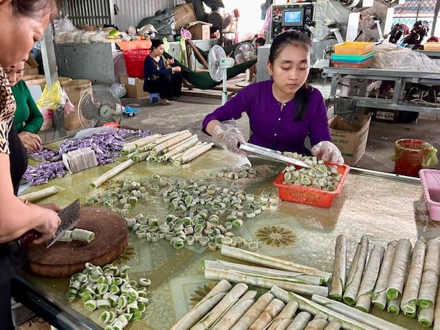 手漕ぎボートを降り、続けて訪れたココナッツキャンディ工房では、
