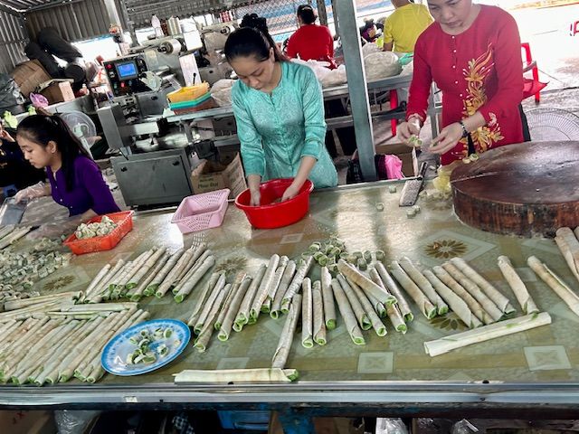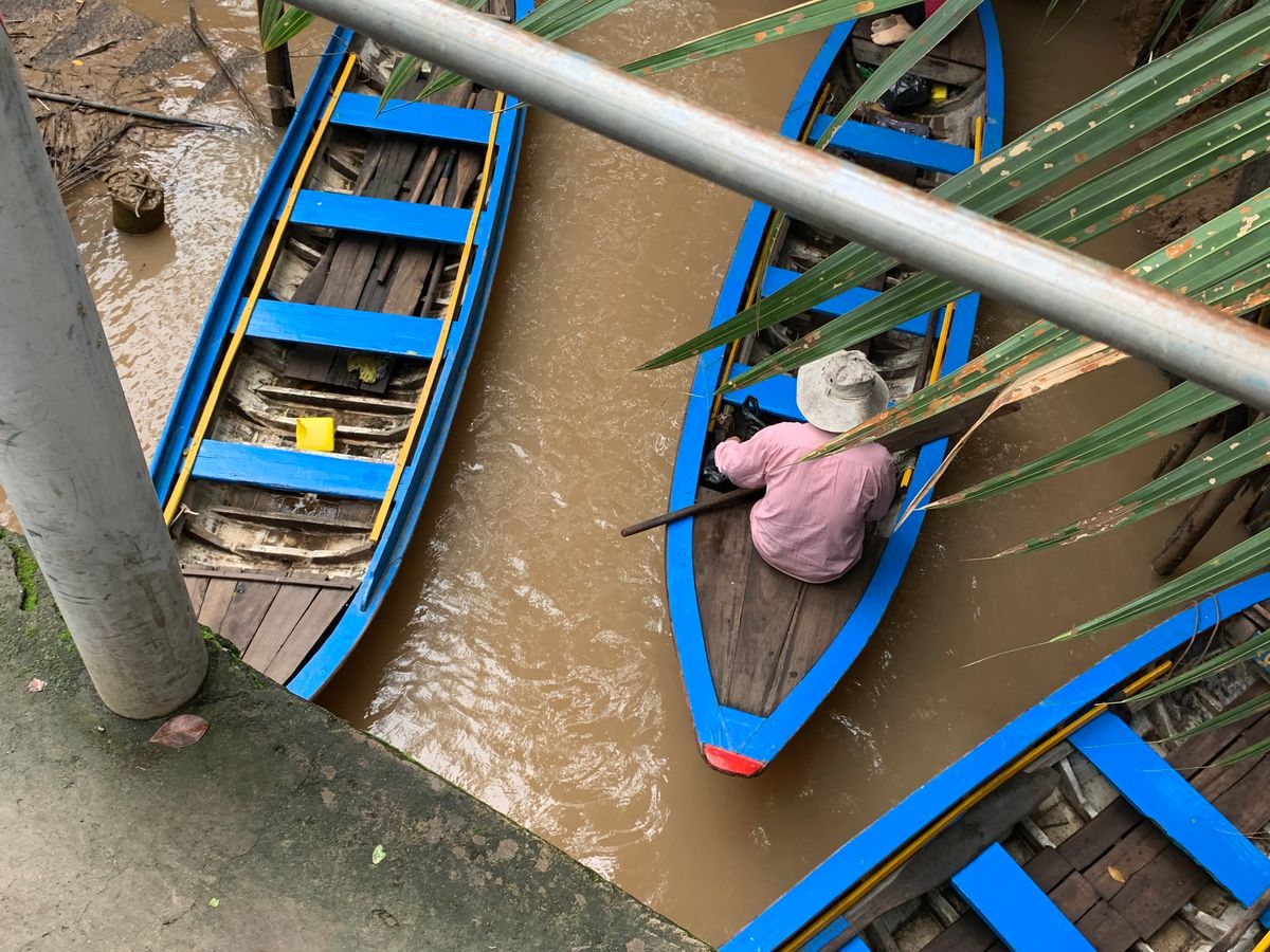 手漕ぎボートは、メコン川の肥沃な大地で育った植物が生い茂った間をのんびり進んで行き、両脇にムツゴロウが現れたり、自然を間近に感じとても心地良い時間でした。
