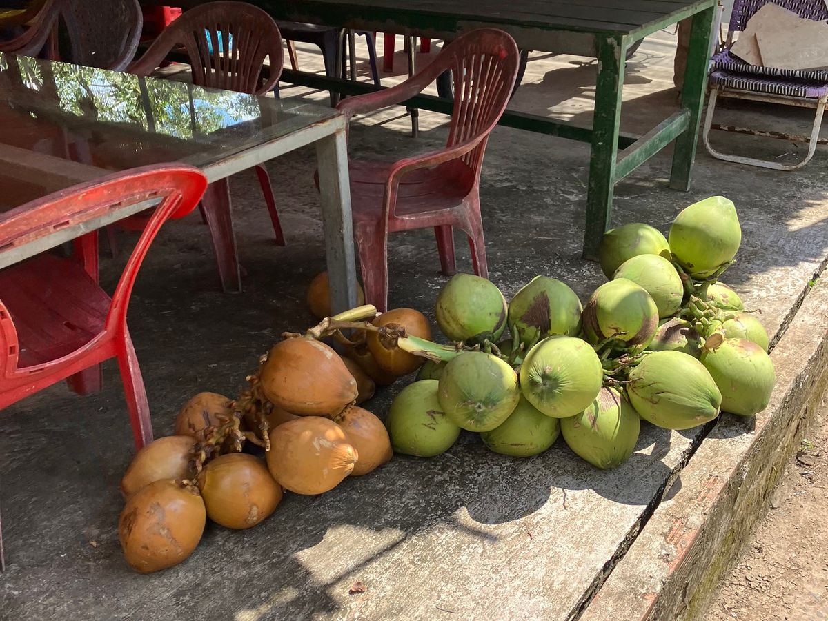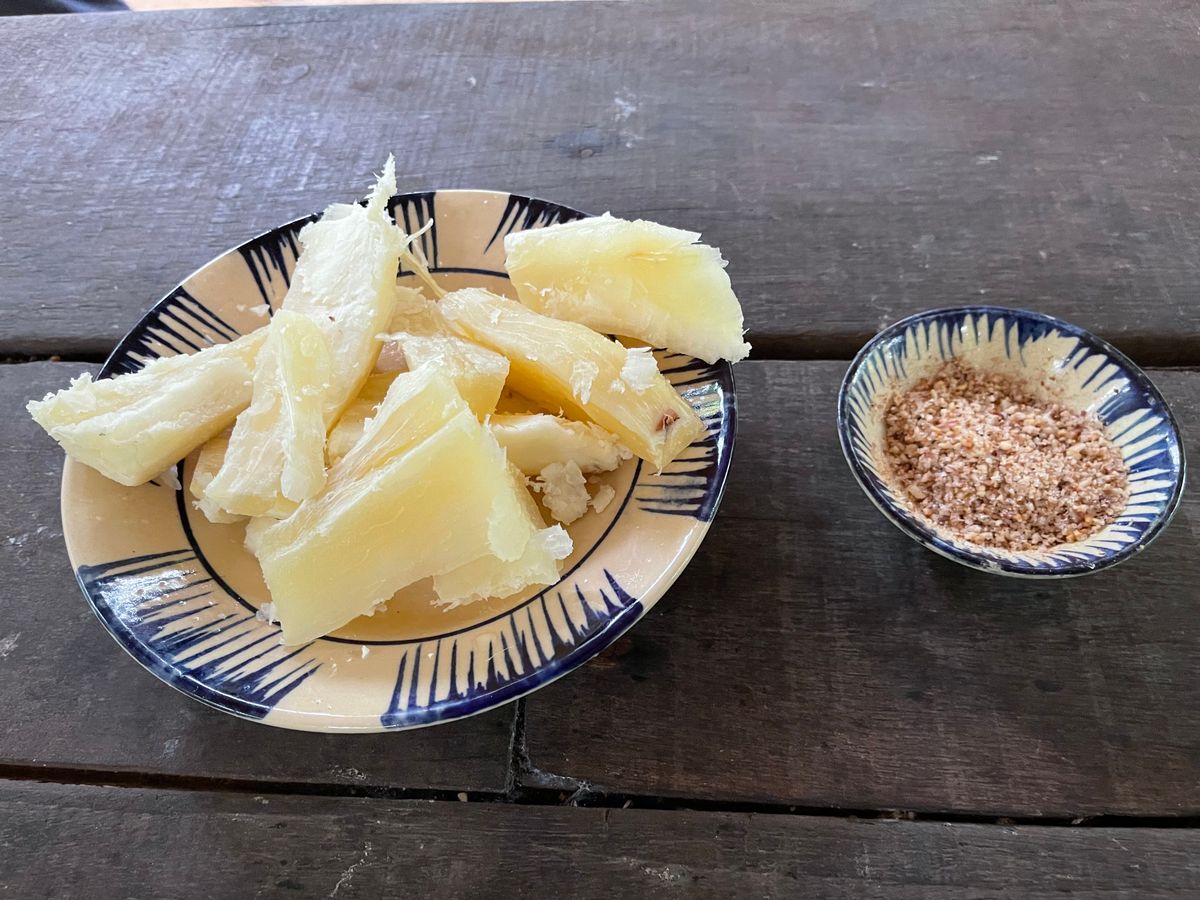 雨が降ると体も地面も濡れて動きにくいので、雨季ではなく乾季の参加を勧めます。料理は、不味くはないが、ものすごく美味しいこともなかった。フルーツの試食で出てくる柿のようなフルーツは、サポジラと言います。