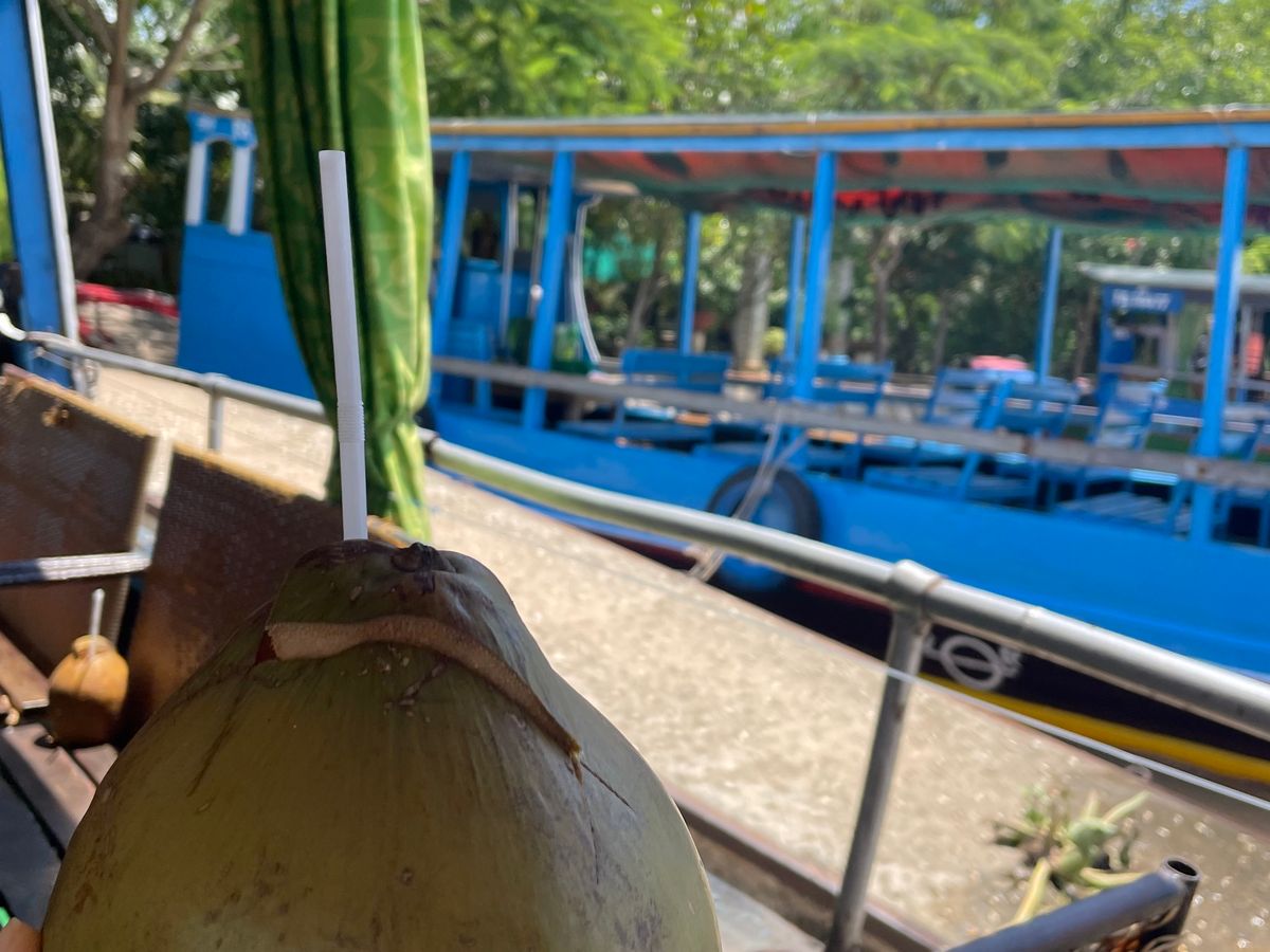 島から戻るボートではココナッツジュースが提供され、喉を潤せました。