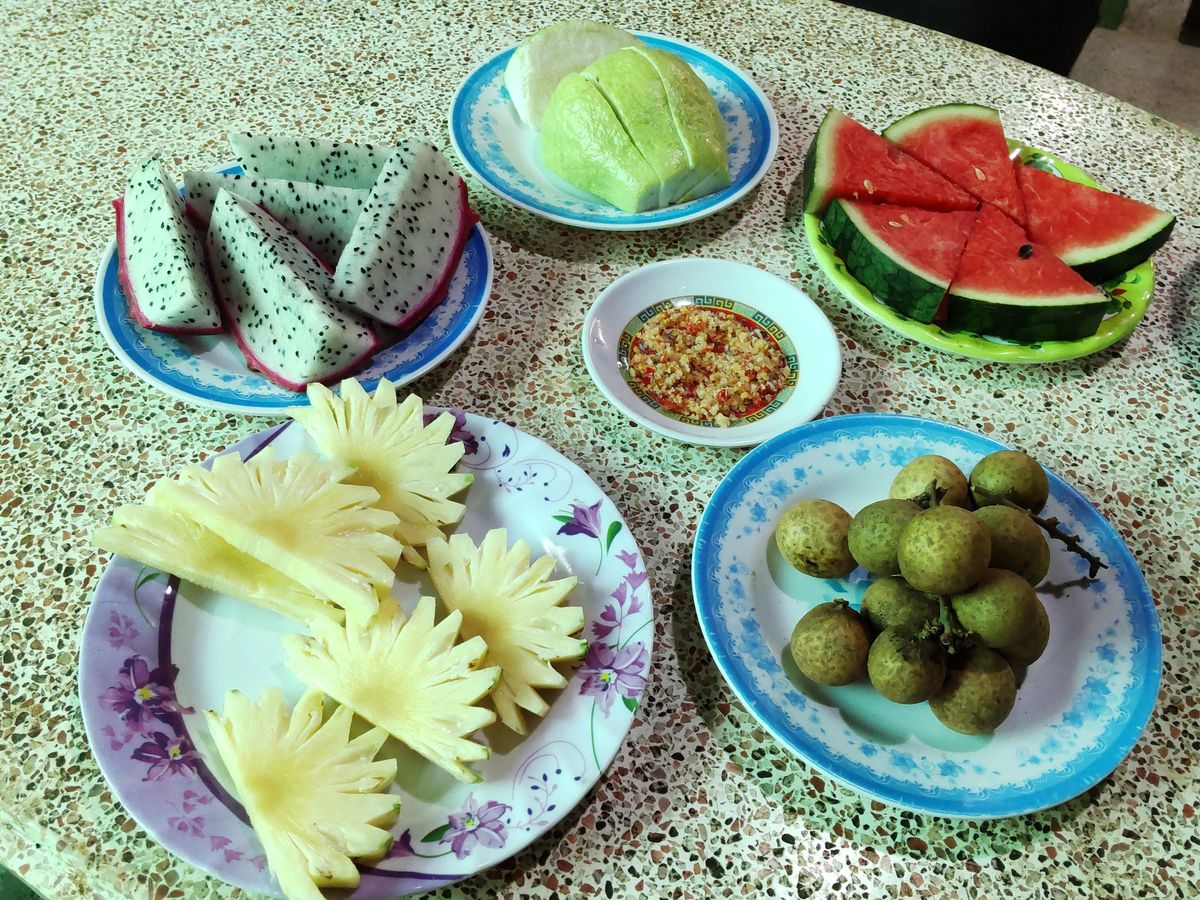 試食できるフルーツは日によって違うそうです。リュウガンは高価です、との話がガイドからありましたが、結局出ず。(過去の参加者の写真を見る限り、出てるときもありますね)
