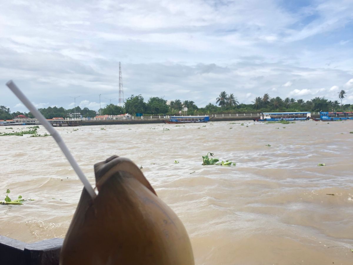 7時半に出発し途中高速のガソリンスタンドとカフェによってみんなでコーヒーを買っていきました。バインミーなど売っているので朝ごはんをここで買ってもいいかも。私達はパンを買っていったのでコーヒーといっしょに食べながらメコン川へ向かいました。
