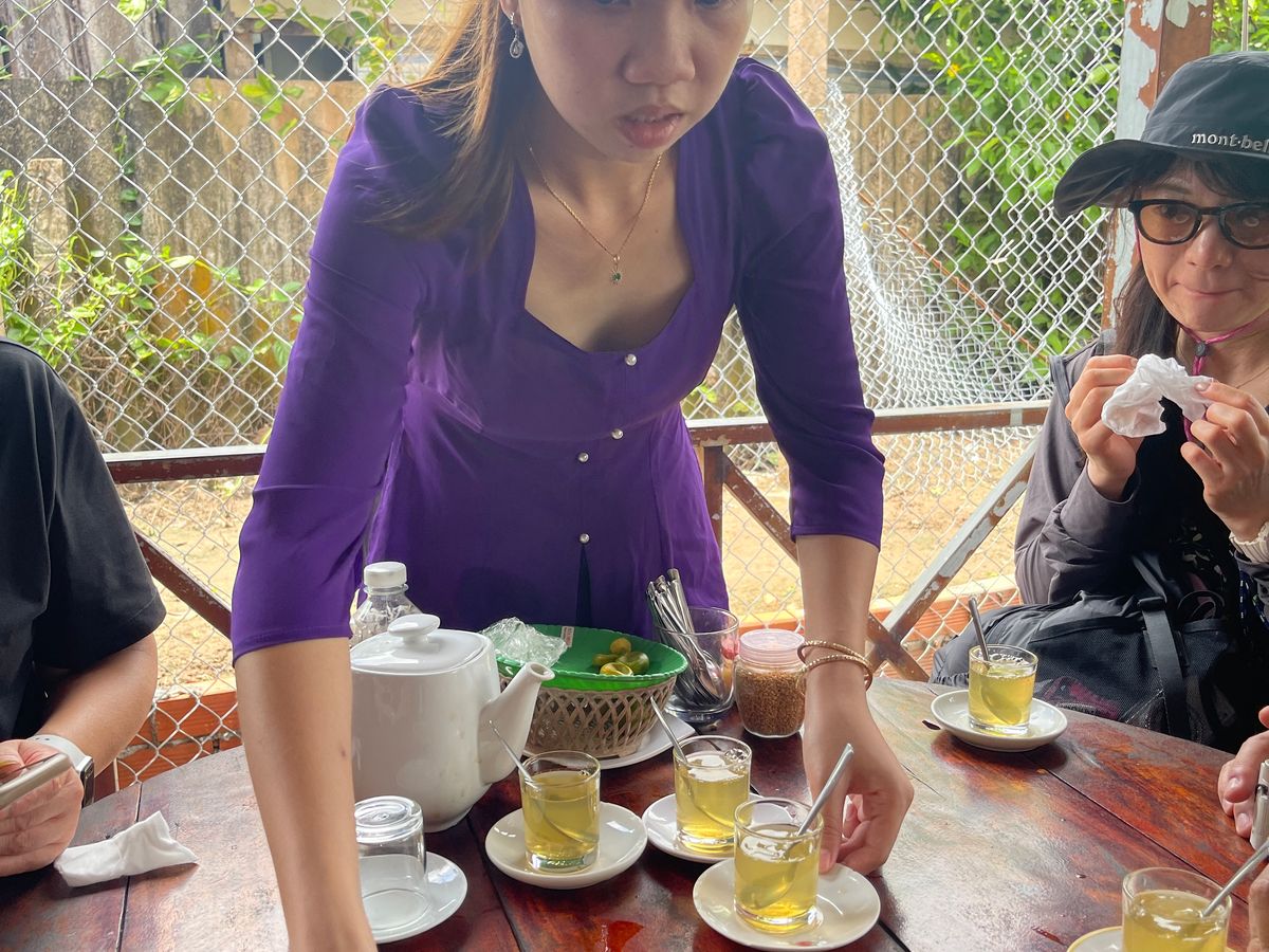 ベトナム在住ですが、家族が来た機会に参加しました。ガイドさんが移動中に盛り上げてくださって、お話も面白くとても楽しい1日になりました。子供2人と大人3人のグループでしたが、同じ舟にのれました。メコン川クルーズ以外にも、ココナッツキャンディ工場見学やランチなど盛りだくさんでした。いろんなアクティビティがあるので、子連れでも飽きずに楽しめました。出来立てのココナッツキャンディはとても美味しかったです。また機会があれば参加したいです。ありがとうございました。