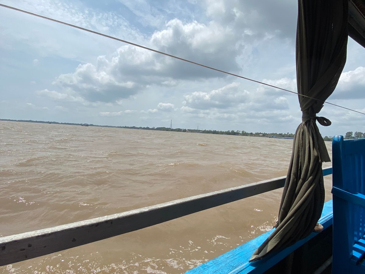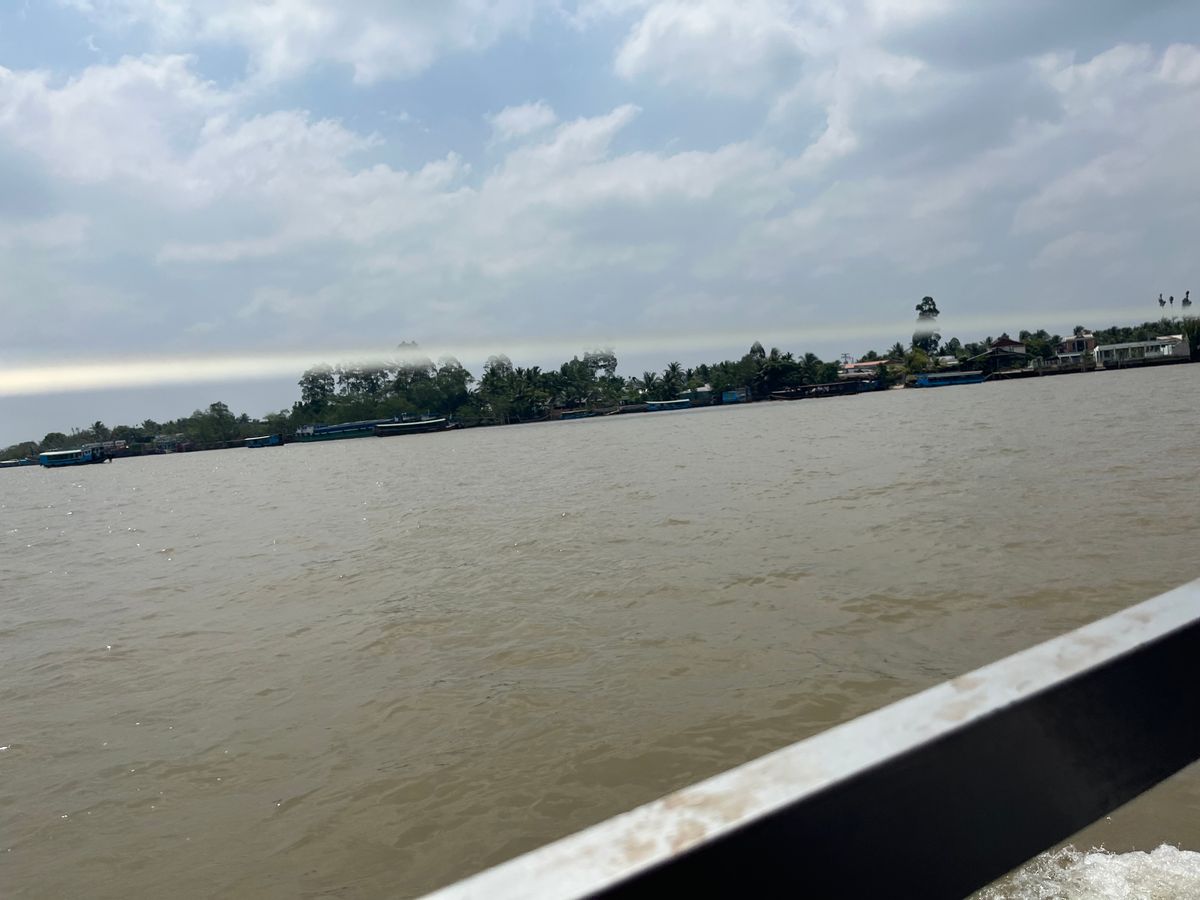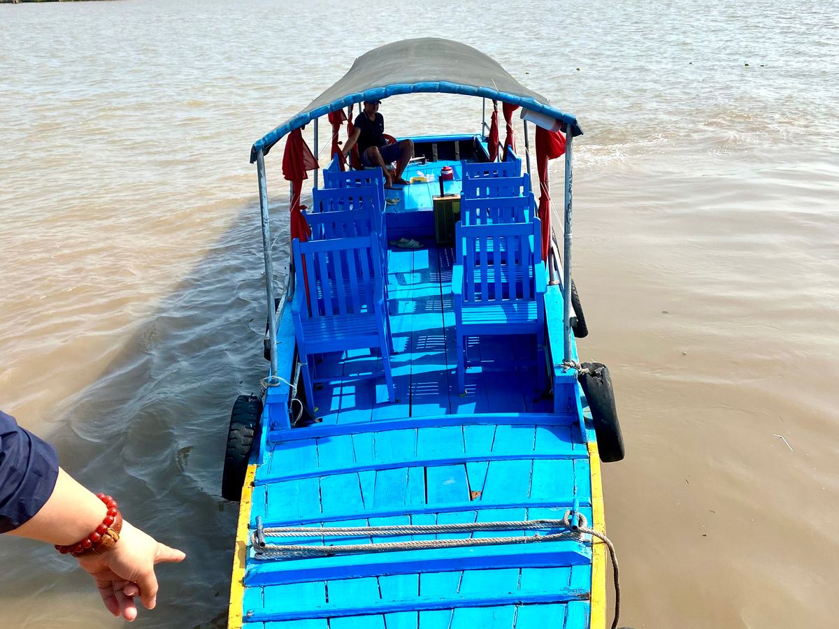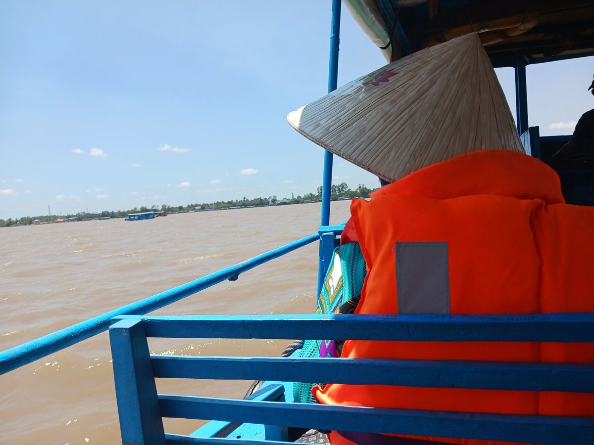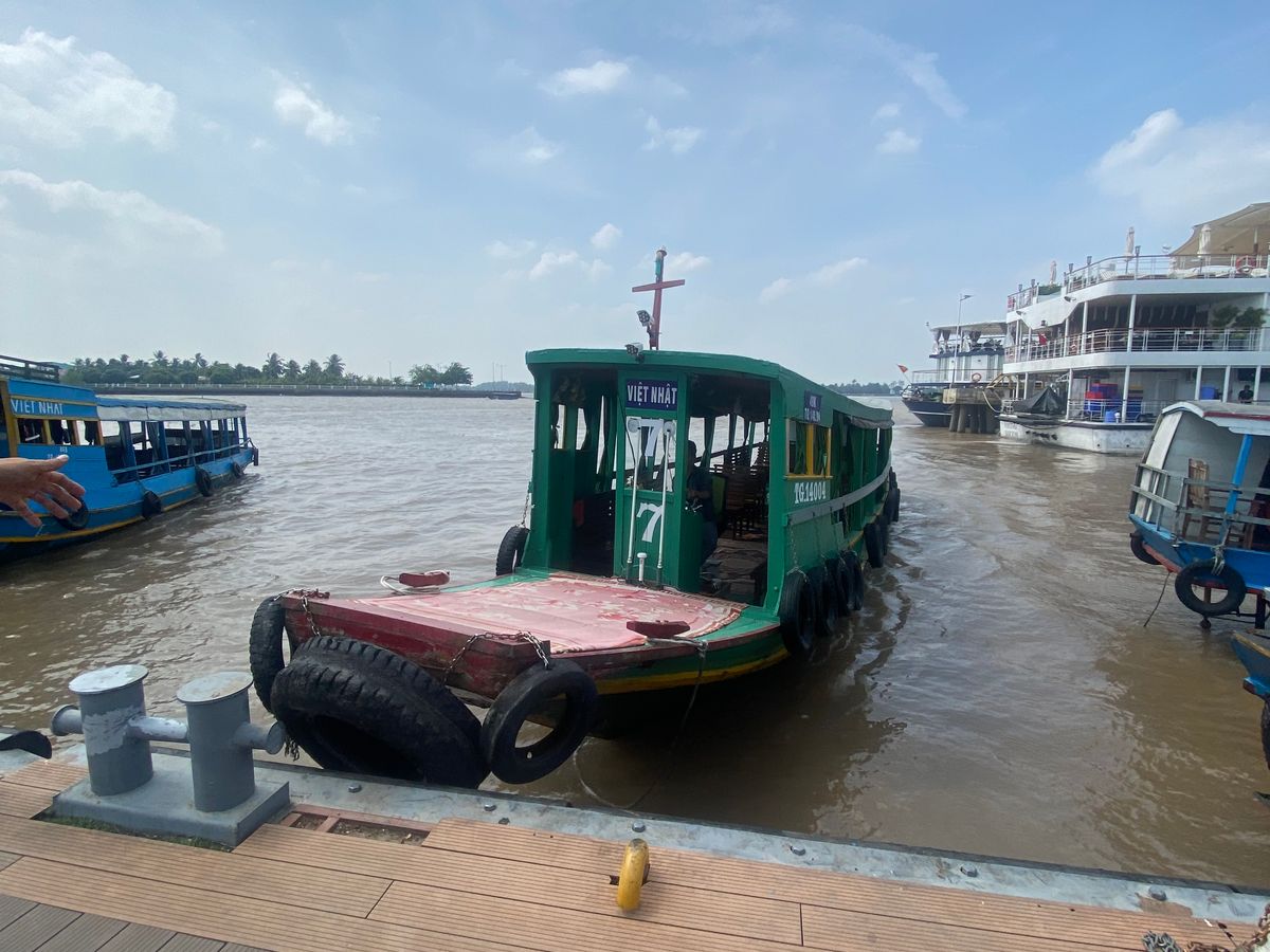 メコン川クルーズのスタート地点のミトーシティに到着してから、エンジン付きの船に乗って、向こうの岸まで行きました。