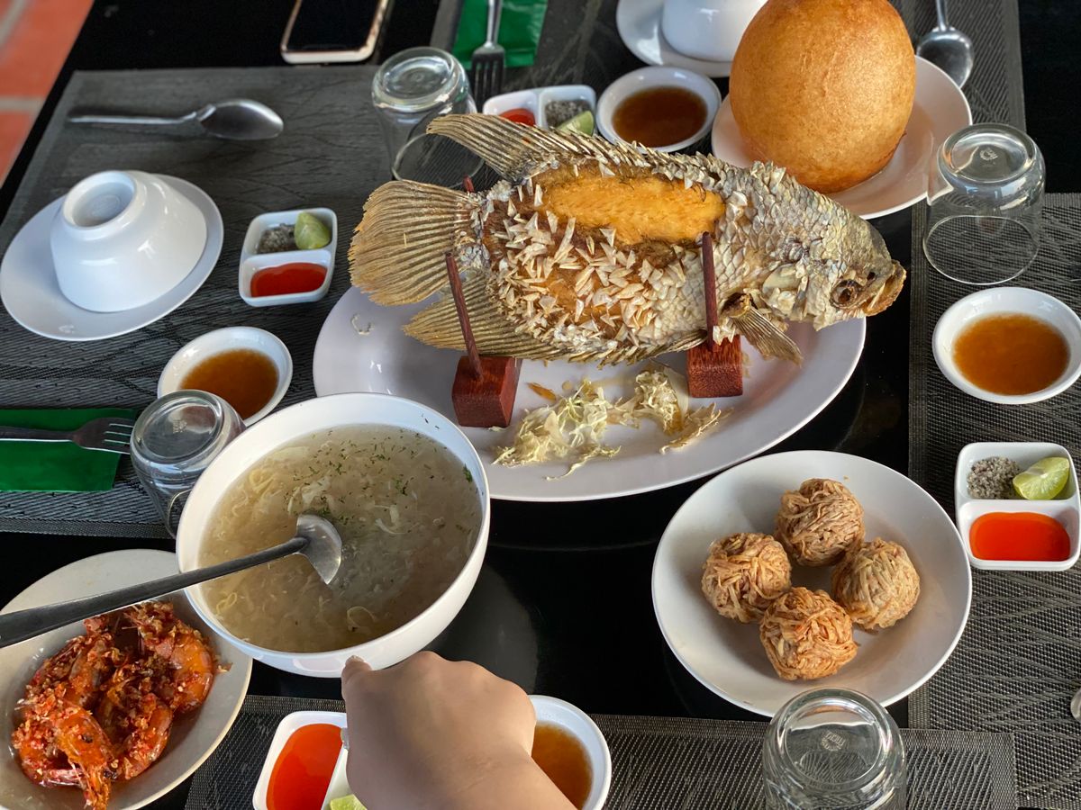 レストランは川沿いで開放的な雰囲気ですが飲み物を半ば強制的に注文させられます。料理は特別に美味しいというほどでもなく、ホーチミン市内の評価の高いレストランで食べた方が美味しいと思う。