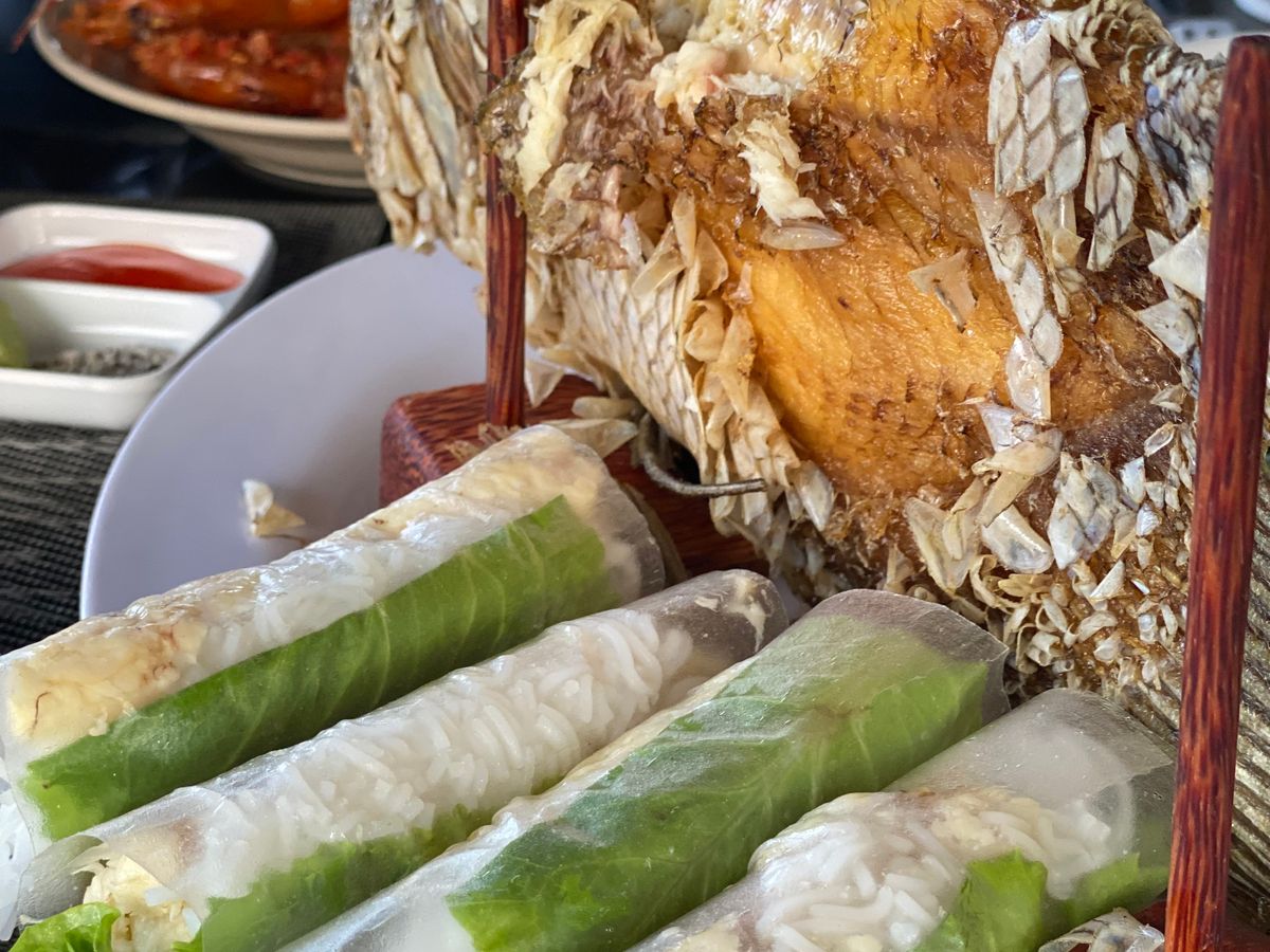 ランチはエレファントフィッシュの生春巻き。