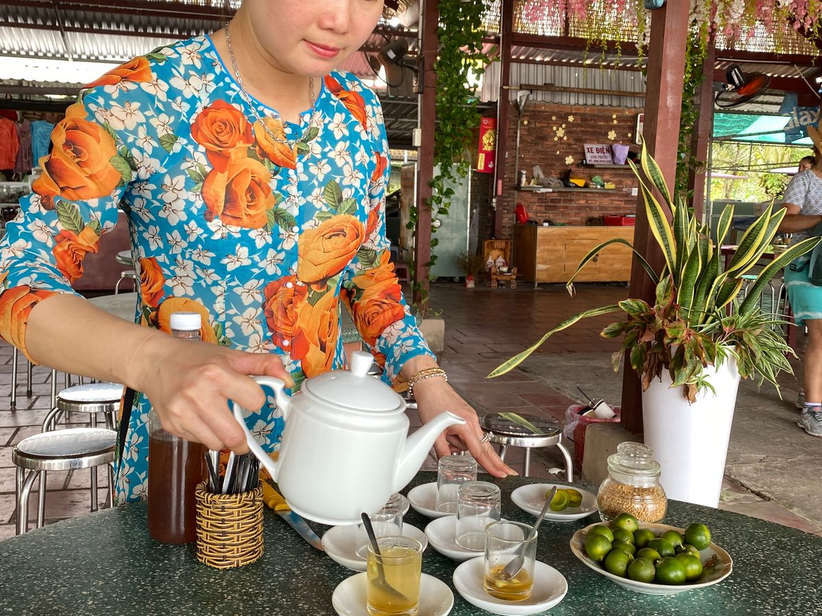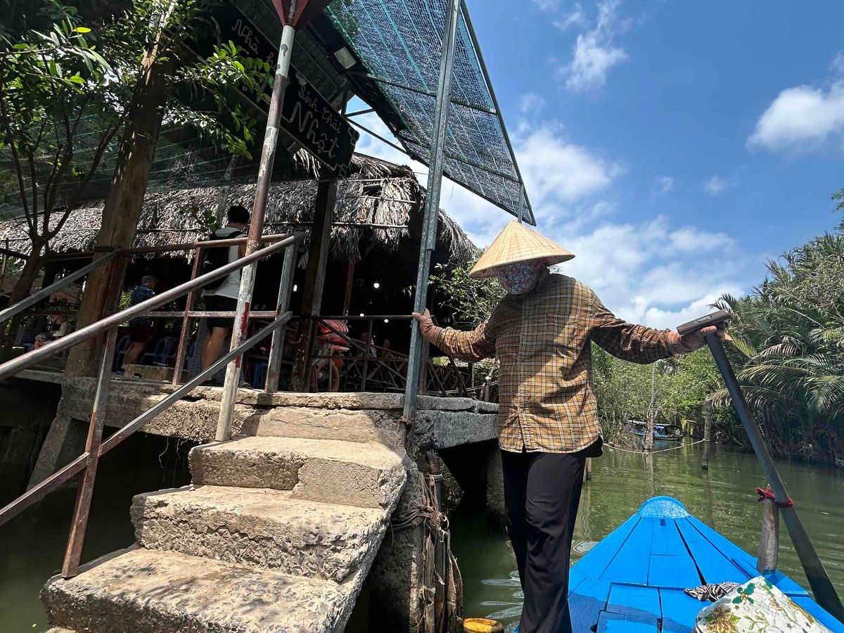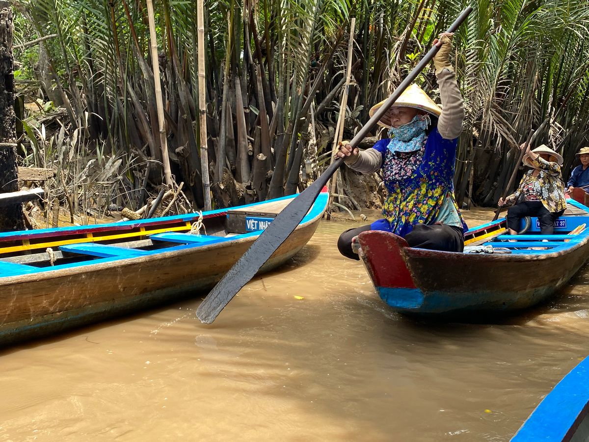 ホテル送迎なのでとても安心なことと、9時ピックなので朝食をゆっくりホテルでとってから出発できるのでこのツアーにしました。往路はベトナムの車やバイクの話、日本の四季に憧れに話から道中の景色話、路面店の話等をして下さり、道も舗装されており快適に過ごせました。フルーツ園ではガイドさんが何の木なのかを教えてくれ、フルーツの試食がとても美味しかったです。リュウガンは初めて食べたので剥き方も教えてもらえて良かったです。蛇が嫌でこのツアーを迷っていましたが、苦手なら遠巻きにぐいにしてもらえたので助かりました。手漕ぎボートはちょっと乗せられている感が強かったですが、虫もすくなく、木の根や粘土質を観ながら風景を楽しめました。車で移動してレストランでの昼食も、味も優しく食べやすかったです。量はとても多くもったいないくらいでした。ゆっくりツアーで体力的にも楽だったので、夕方4時に戻ってから他の観光もできるので行ってみる価値のあるツアーだと思います。