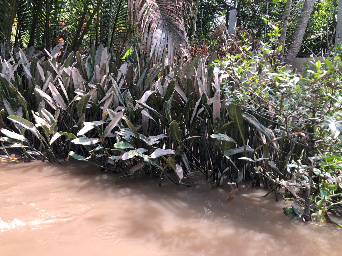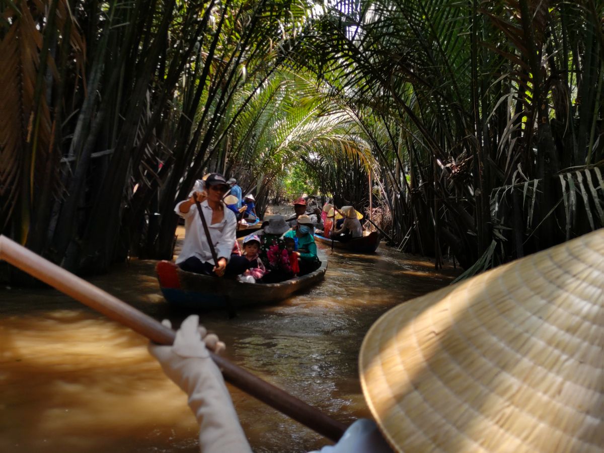 その後に、小さな手漕ぎボートで、メコン川のマングローブのトンネルを通り抜けました。