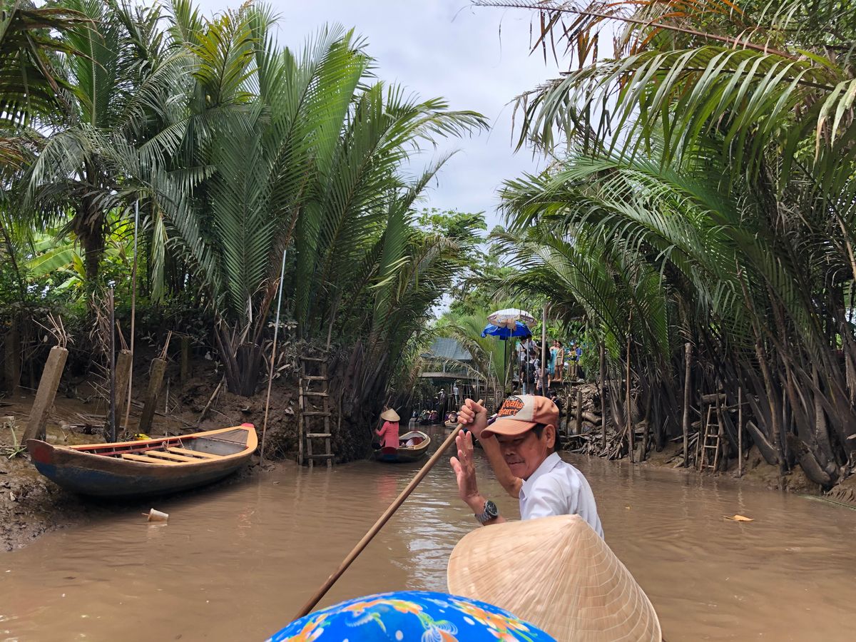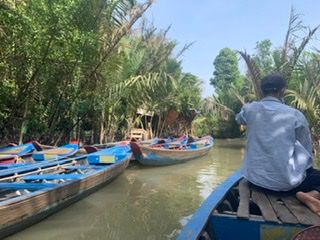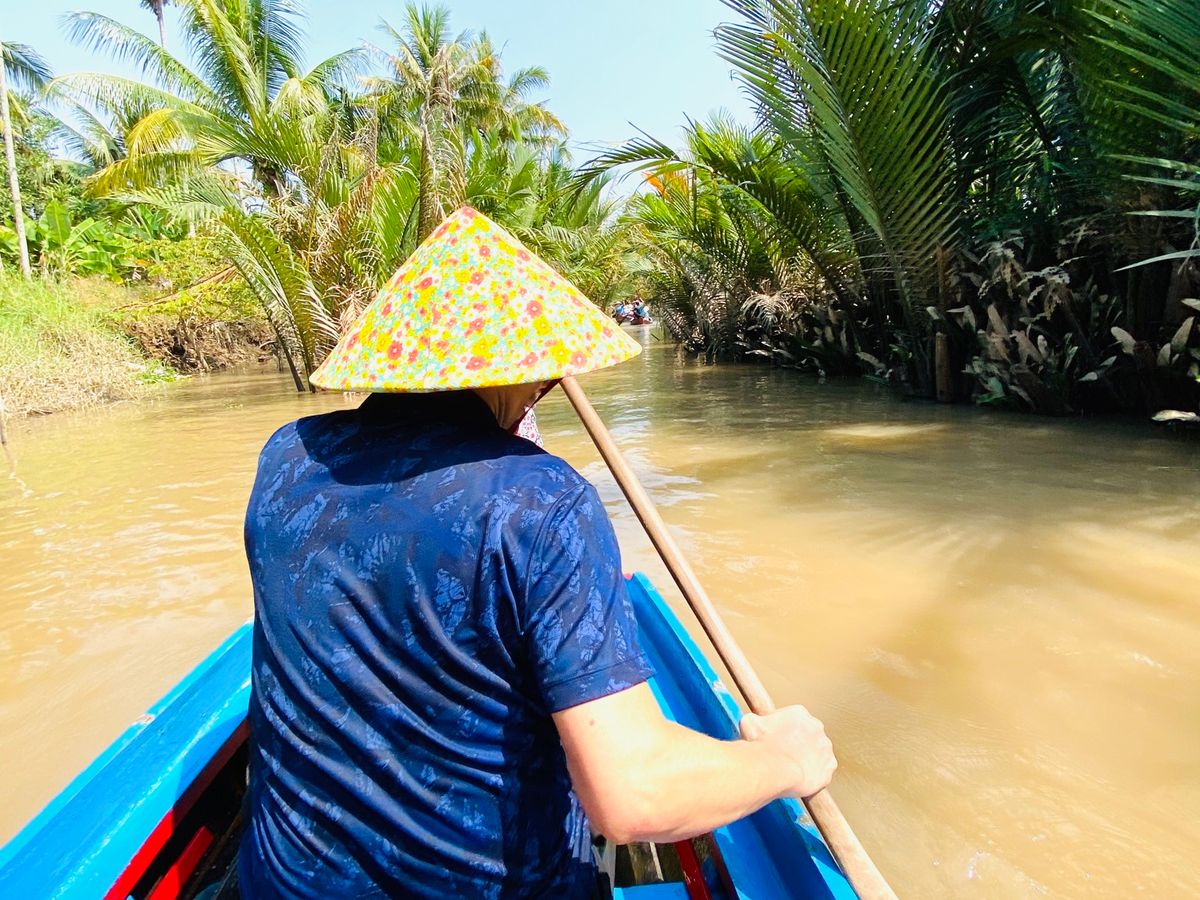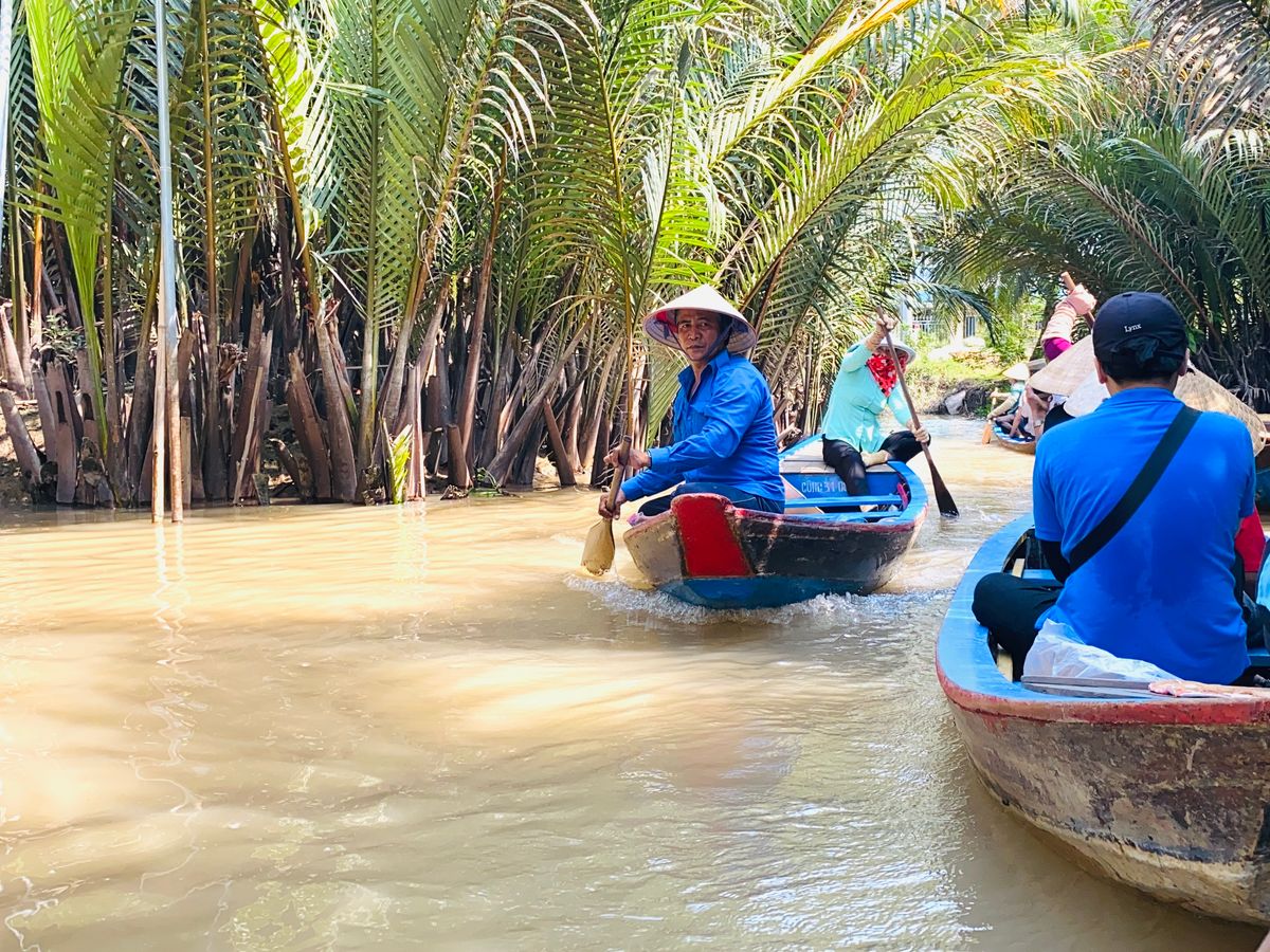 朝、メコン川に向かうまでは約1時間半ほどかかりましたが、道中はガイドさんによるメコン川の歴史など解説頂き、とても勉強になりました。メコン川の乗船場所のミトー到着後、手漕ぎボート乗場まで船で約30分ありますが、ここでもガイドさんによる現地の植物や果物の解説で勉強になるお話もたくさん聞くことができ、また手漕ぎボートでは現地の方が担当してくれ、注目ポイントを随所で教えてもらいました。帰りの船では天然のココナッツジュースをもらい、とても美味しく感動しました!その後のランチではメコン郷土料理!エレファントフィッシュとはどんな味なのか、、美味しいのか、、不安と期待を入り混じりながら食べたのですが、とても美味し頂けました。ここでしか頂けないと思うので非常に貴重な体験をさせてもらいました!