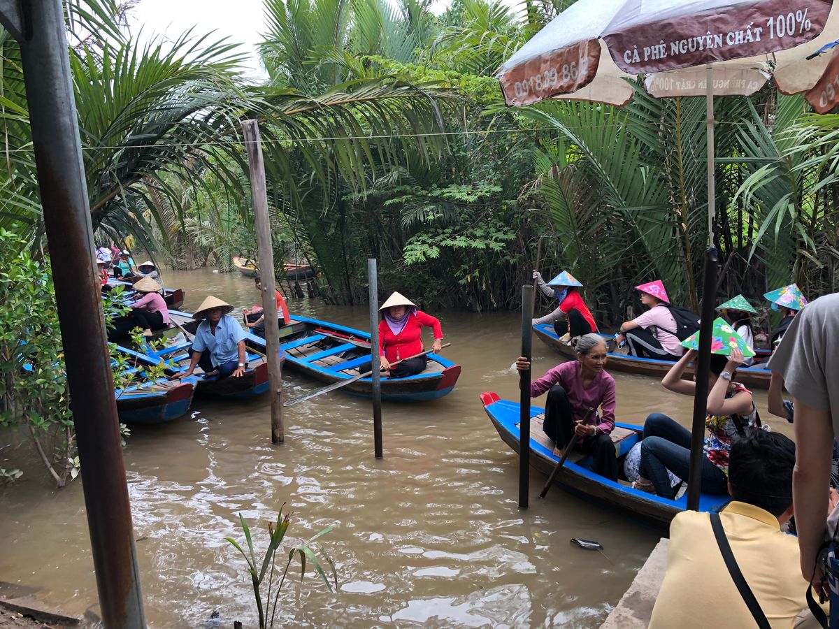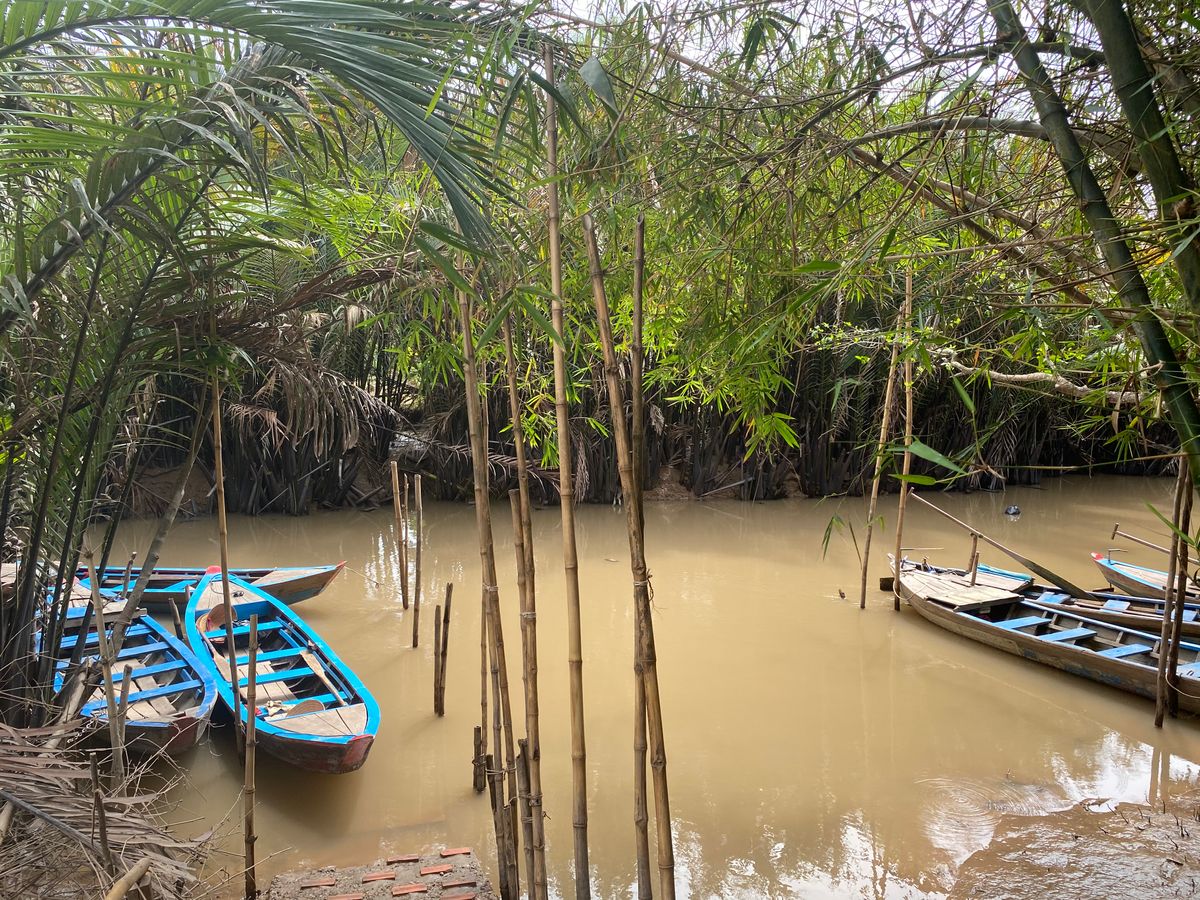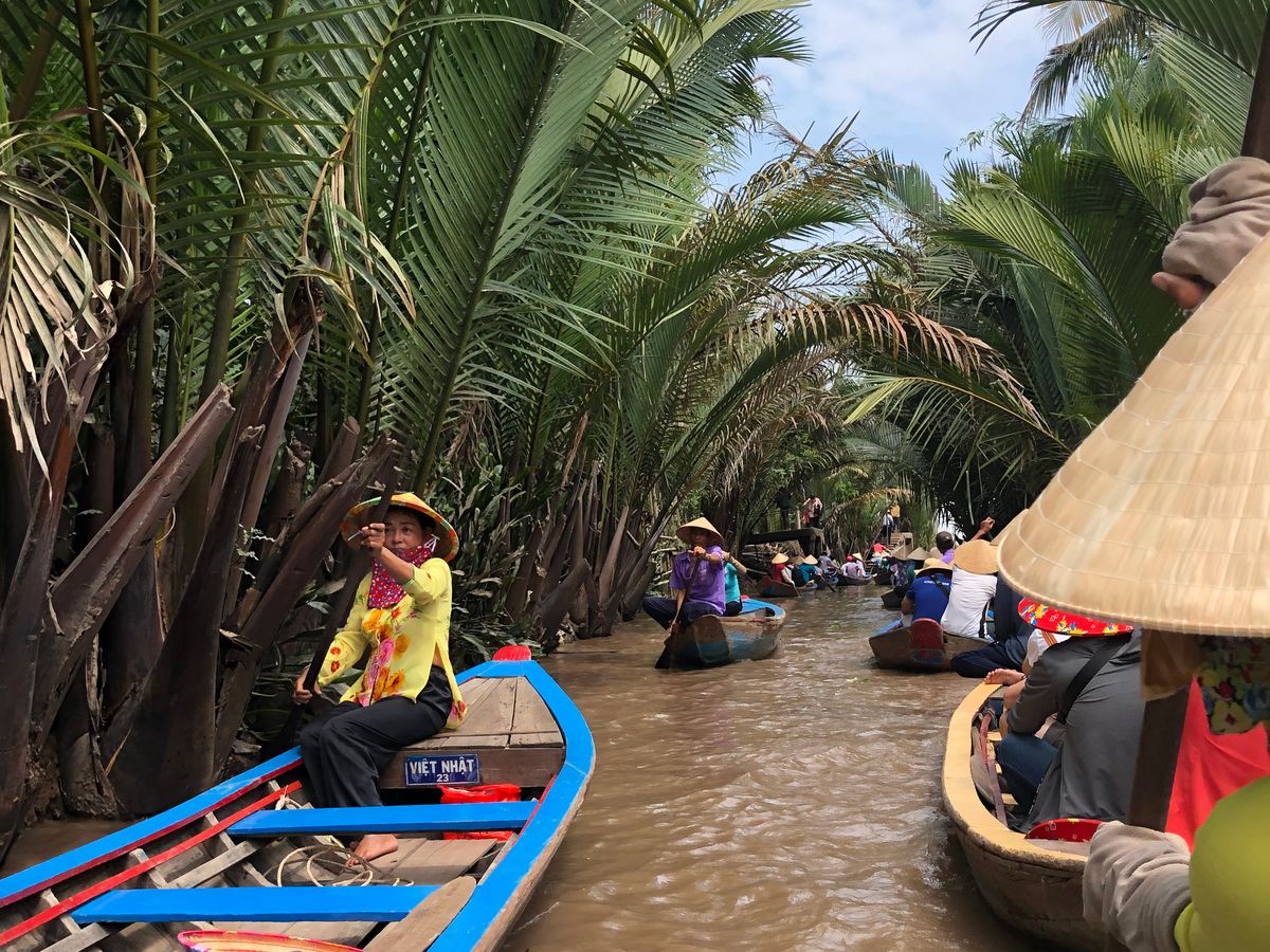 朝、メコン川に向かうまでは約1時間半ほどかかりましたが、道中はガイドさんによるメコン川の歴史など解説頂き、とても勉強になりました。メコン川の乗船場所のミトー到着後、手漕ぎボート乗場まで船で約30分ありますが、ここでもガイドさんによる現地の植物や果物の解説で勉強になるお話もたくさん聞くことができ、また手漕ぎボートでは現地の方が担当してくれ、注目ポイントを随所で教えてもらいました。帰りの船では天然のココナッツジュースをもらい、とても美味しく感動しました!その後のランチではメコン郷土料理!エレファントフィッシュとはどんな味なのか、、美味しいのか、、不安と期待を入り混じりながら食べたのですが、とても美味し頂けました。ここでしか頂けないと思うので非常に貴重な体験をさせてもらいました!