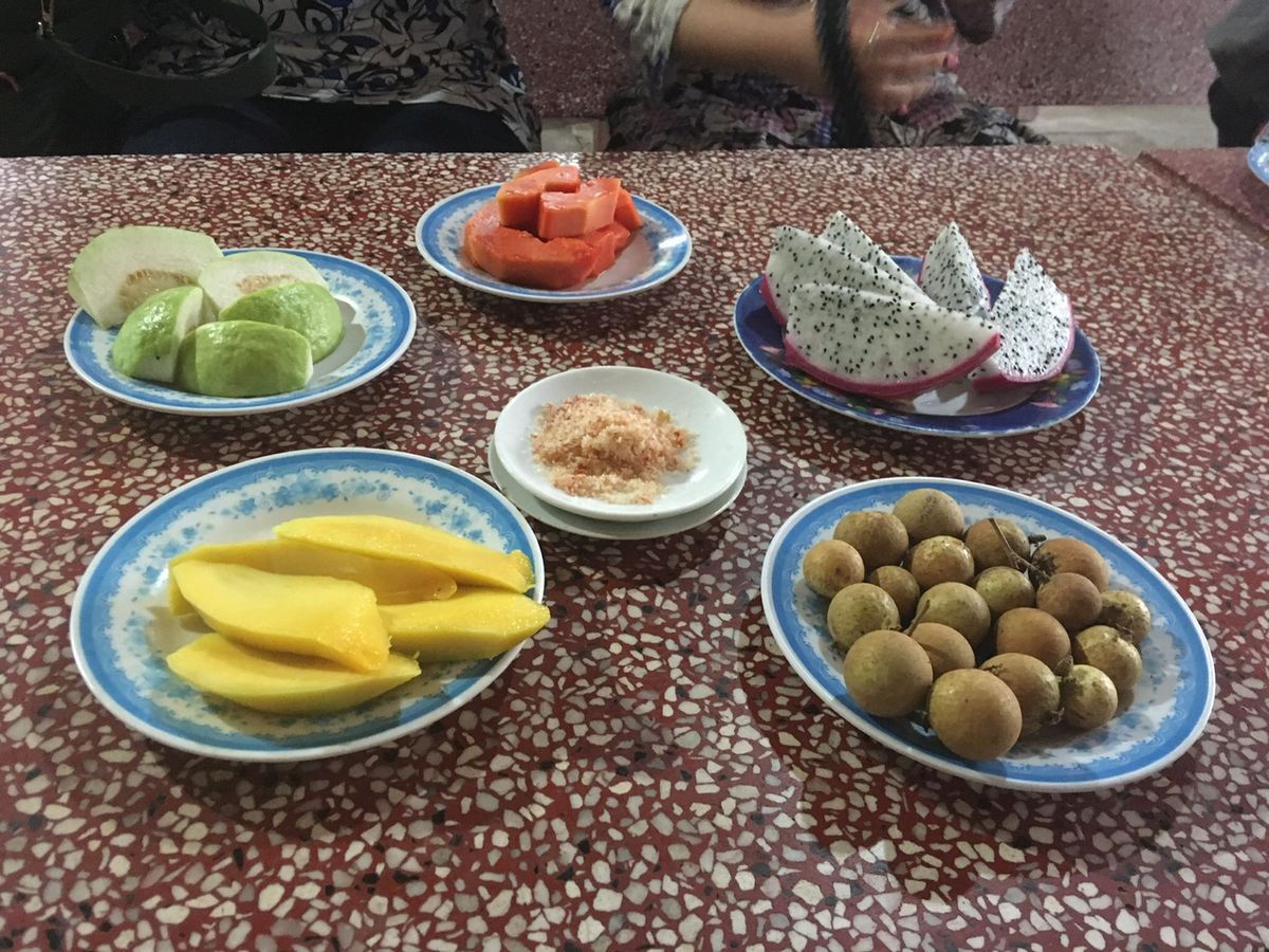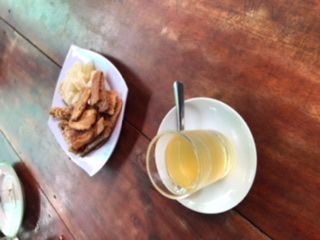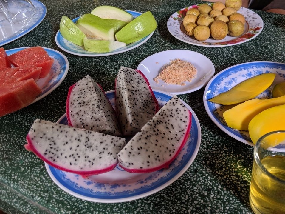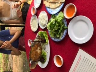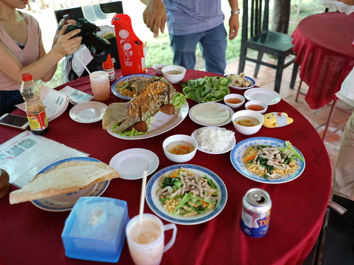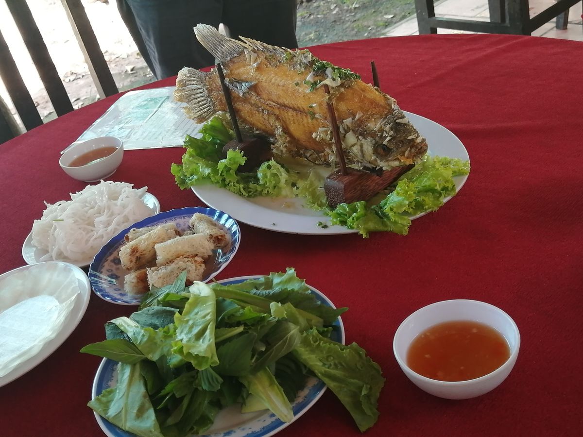 昼ごはんは蜂蜜農家でもみた象耳魚を食べました。白身がぷりぷりで美味しくて、川魚にもかかわらず、臭みも全くなくとても美味しかったです。ベトナムのデザートやフォーなどベトナム料理を堪能できました。