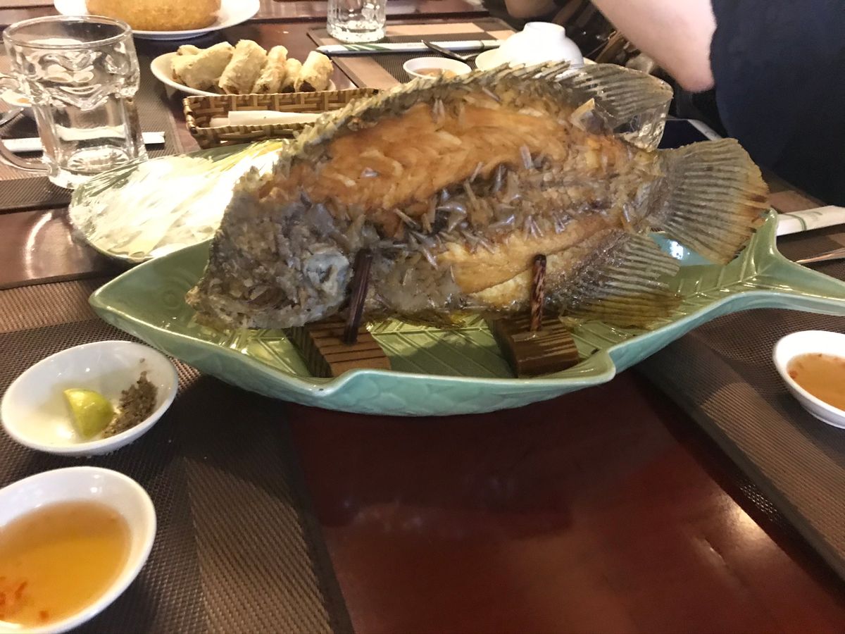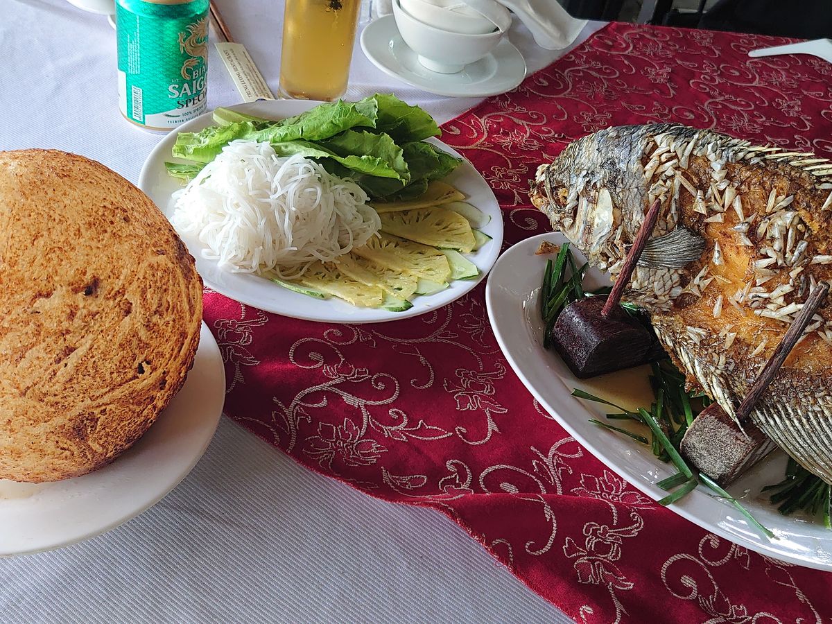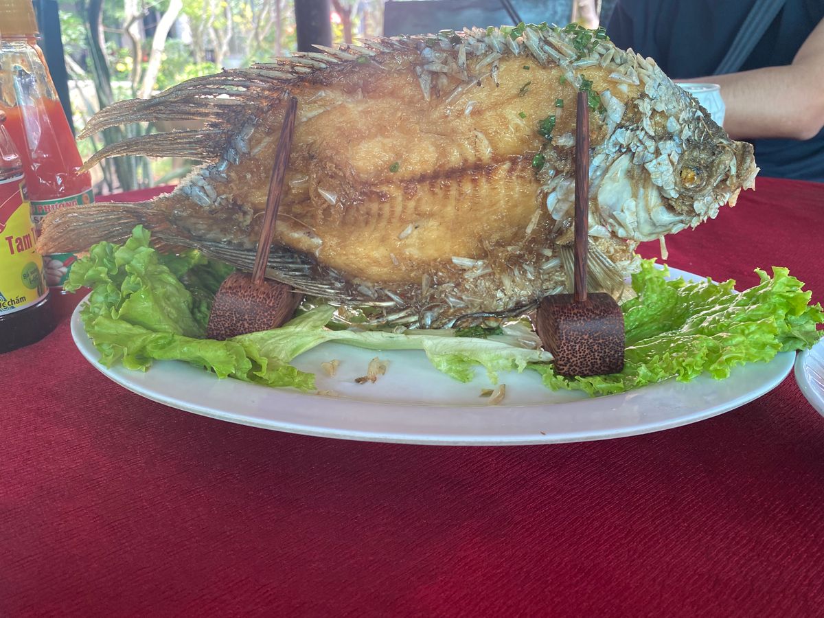 昼ごはんは蜂蜜農家でもみた象耳魚を食べました。白身がぷりぷりで美味しくて、川魚にもかかわらず、臭みも全くなくとても美味しかったです。ベトナムのデザートやフォーなどベトナム料理を堪能できました。