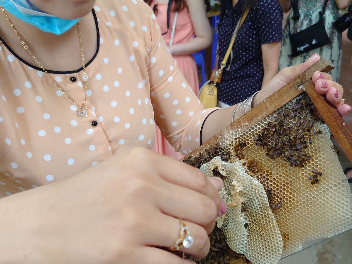 ミトーメコン川クルーズでは色々なフルーツを食べたり、大きな蛇を首にかけたり蜂の巣を持ったりと楽しかったです。