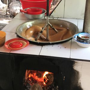中洲の島に到着後、フルーツを食べながら音楽を聞き(残念ながら、楽しい音楽ではない…)、カートに乗って移動。チョコレート屋さんを少し見て、ハチミツ園とココナッツキャンディ工場へ行きました。
