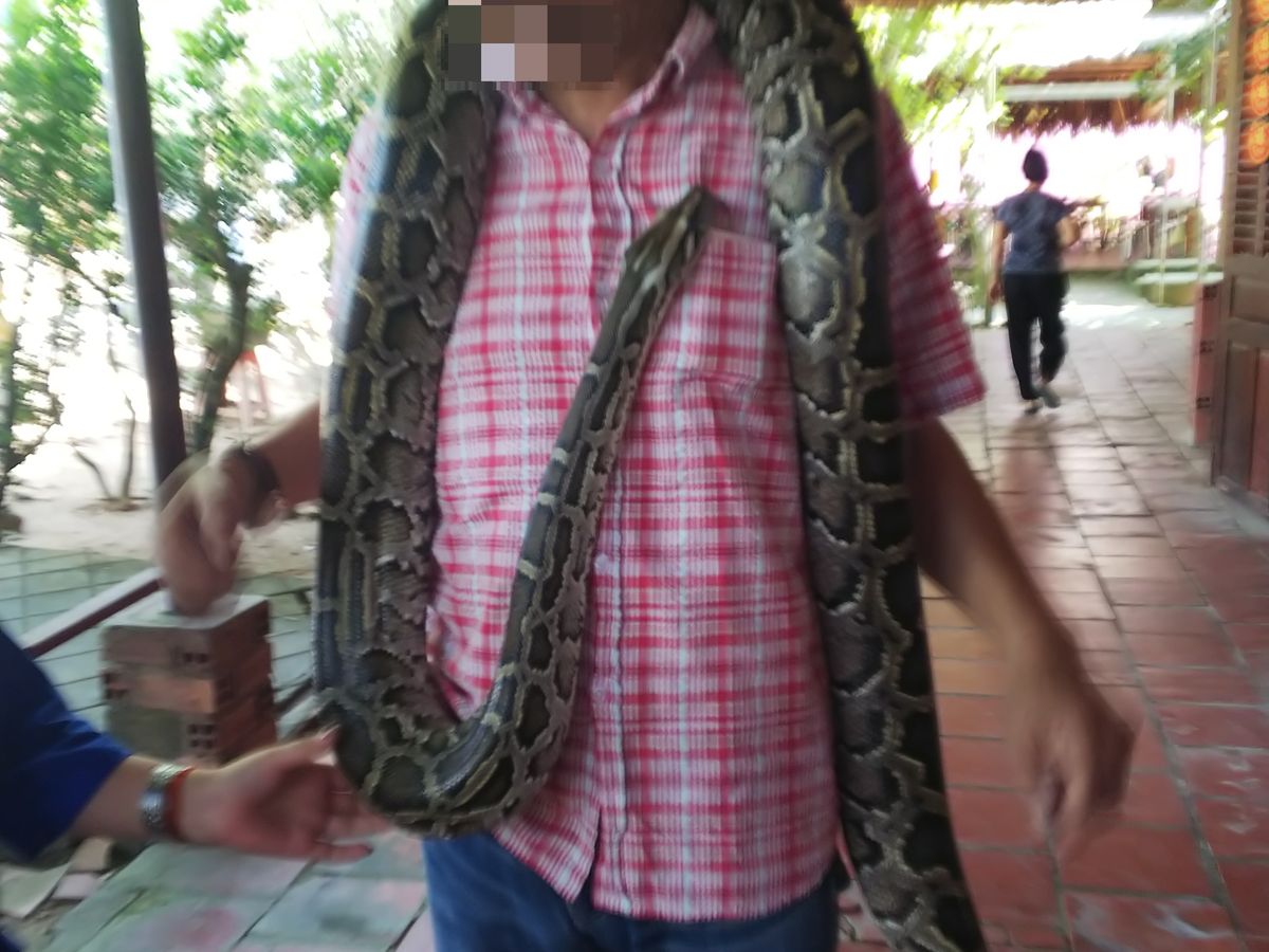 ・竜眼ハチミツの試食と大蛇を抱く体験。