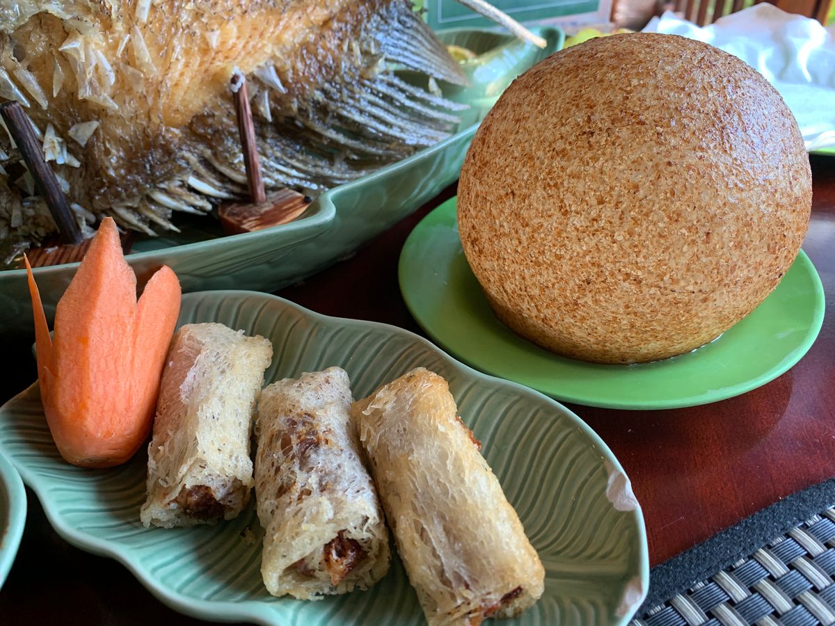象耳魚は見た目に反してあっさりとした繊細なお味ですね。揚げ餅もメコンデルタの名物料理です。