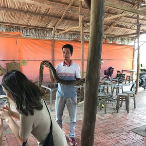 朝にホテルまで迎え来てくれるので、安心でした。ガイドさんもいい人で日本語が上手でした。繁華街なら離れ、自然も満喫でき蜂や蛇を持つこともできました。ちょこちょこ味見もできました。潔癖症な方はウェットティッシュがあると良いかもしれません。手漕ぎ舟はリアルジャングルクルーズでした!お昼も夜も量が多く充実していました!水上人形劇はシュールで面白くクルーズはご飯がすごく美味しかったです!