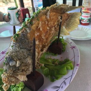 昼食の像耳魚は、食べにくかった、、、。笑