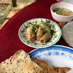 メコン川クルーズのミトーへ向かう途中、象耳魚の昼食を食べました。揚げた餅がおいしかった。