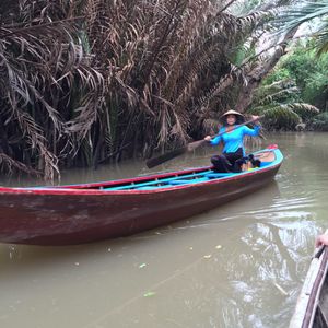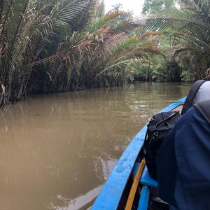 メコン川を船で島に渡り、島の中の川を船頭さんの手漕ぎボートで遊覧しました。自然を近くに感じられ、船の揺れなどもあり、とても楽しかったです。島の原風景を見ることが出来ました。