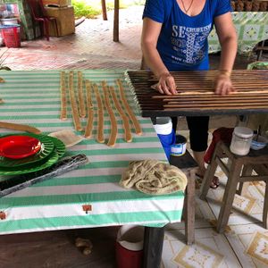 ライスペーパーの作り方を見学して、キャッサバ芋のふかした物とお茶を頂いてクチトンネルを後にしました。