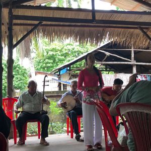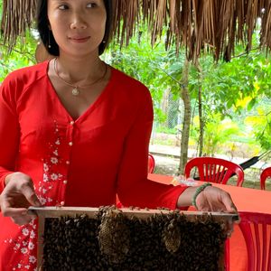 最後にハチミツ工場に。これまた一番なので、雨の日には難しいらしい、巣を見せてもらい、1人ずつ写真を撮ってもらえました。他の方が来るまで、ゆっくり美味しいハニージュースをたっぷりとのんでフルーツ食べてのんびりと。念願のジャックフルーツもあってルンルンでした。最後に伝統の音楽を聴いて、ツアーは終了!!