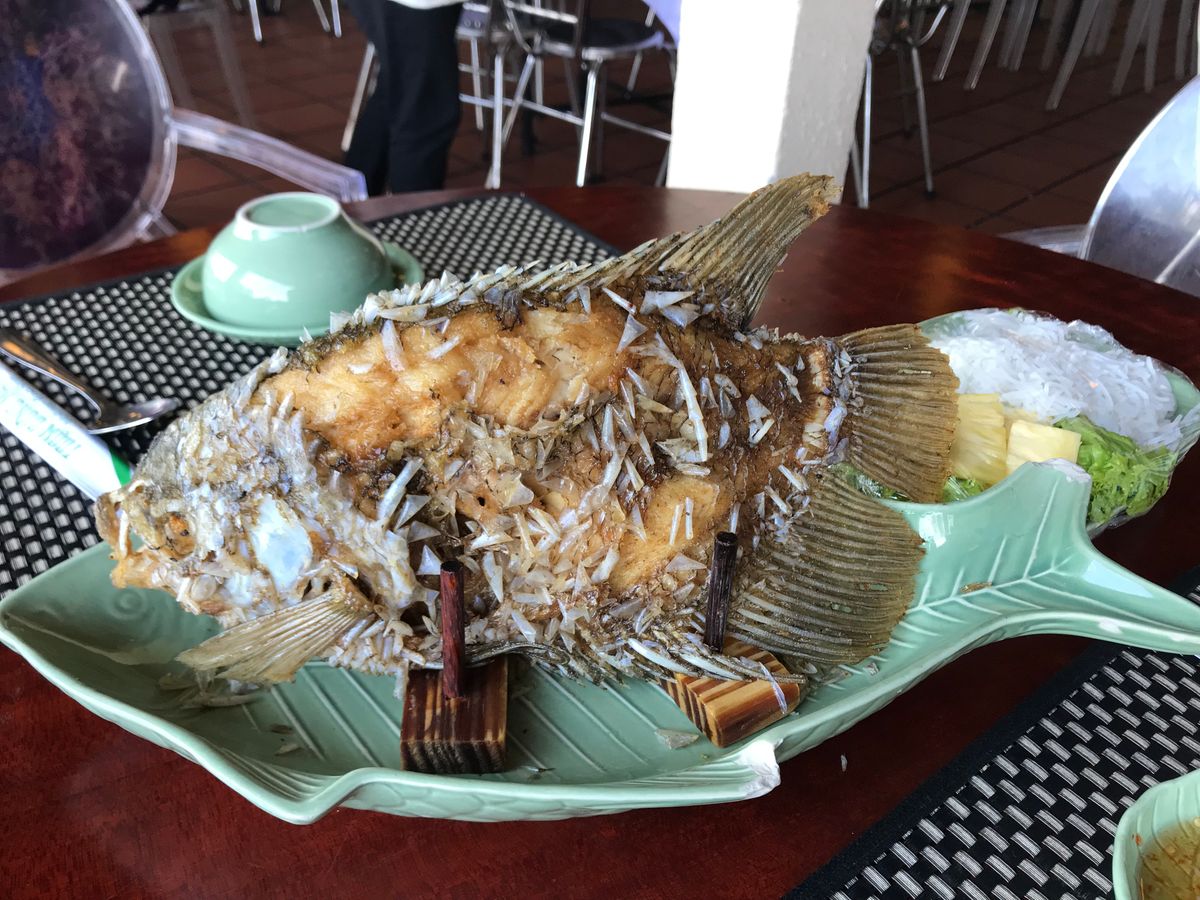 昼ごはんのレストランは、着いたら暖かい麺や揚げ春巻などが並び、比較的美味しく頂けたものが多かったです。目玉?のエレファントイアーフィッシュは揚げすぎで見た目だけだったかな。。。。