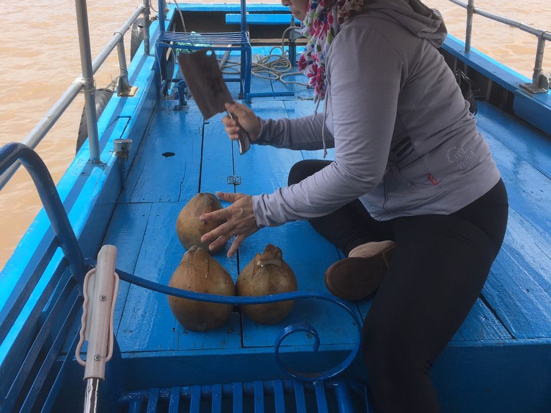 メコン川クルーズではガイドがチップをまとめて渡しておりますが、どうしても漕ぎ手によってはチップを請求します。