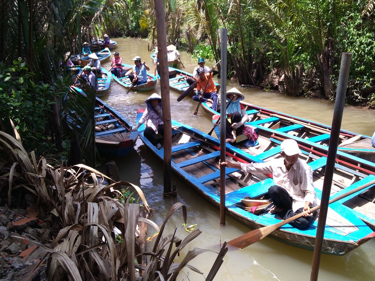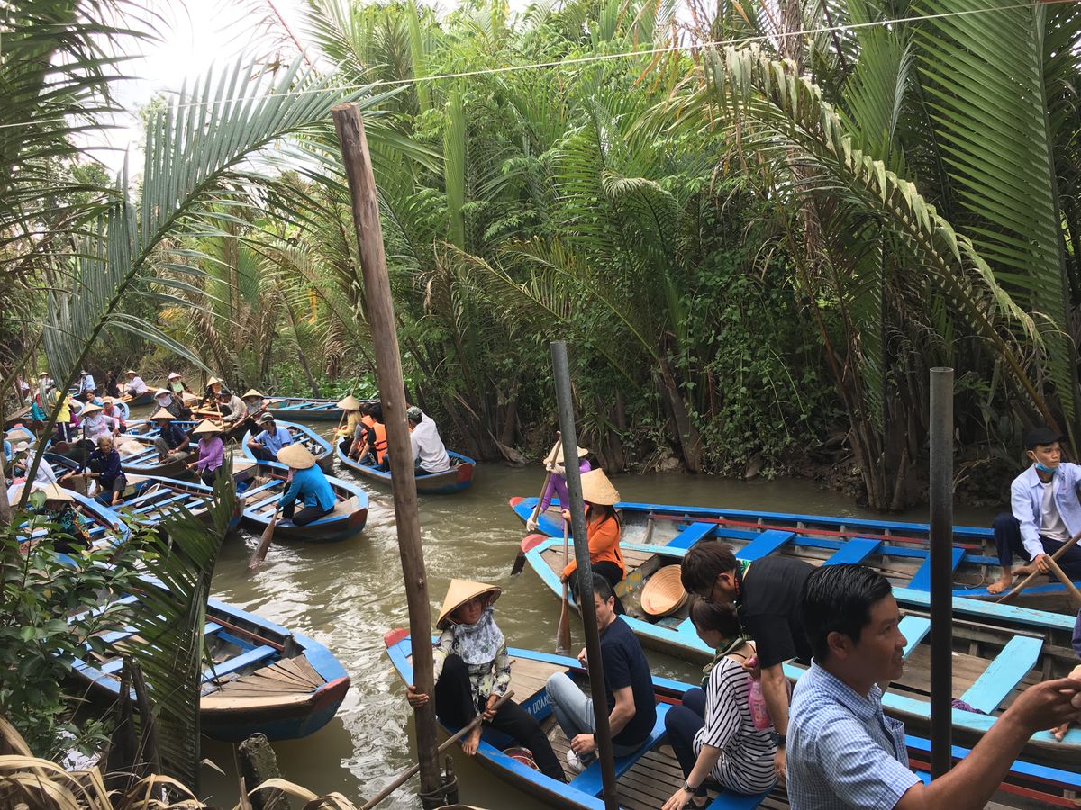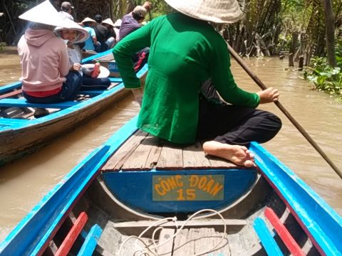 メインイベントの小さなボートでのクルーズの時間が15分程度と短く、他のツアーも多くいたためボートが渋滞していてあまり風情はなかった。それ以外のアクティビティはココナツキャンディ、ハチミツなどの物売りやチップ集め目的のお世辞にも上手とは言えない大衆歌唱などメコンクルーズとは関係ない内容がほとんどなので、興味ない人は持て余すかも。物売りの値段は現地の物価を考えると割高。途中立ち寄ったレストランでの昼食は期待が大きいとがっかりするかもしれないが、ツアーででてくる一般的レベルで考えるとそこそこおいしかった。他のツアー客のほとんどは2、3名の少人数で参加しており小さい子供連れの方を含めて特に問題なかったものの、社員旅行らしき10名程度のグループが、ツアーバスの車内でバラバラに座って大声で話したり、散策の時間中にビールを飲みながら騒いだりして不快だった。大人数のグループで参加するなら別途貸切などで対応してほしかった。